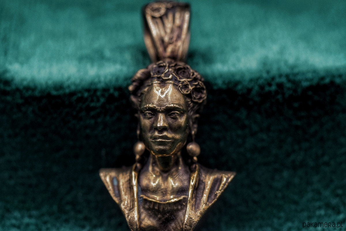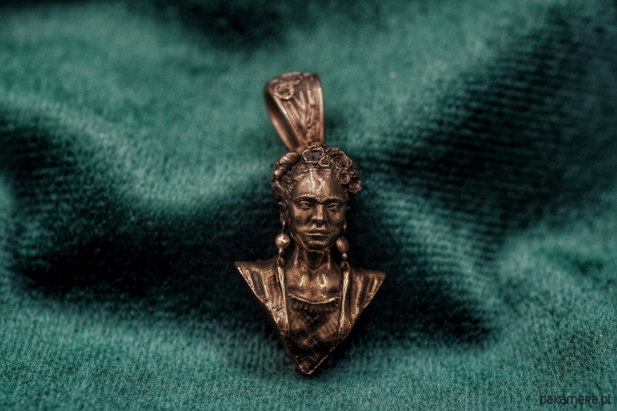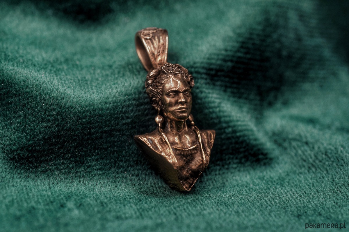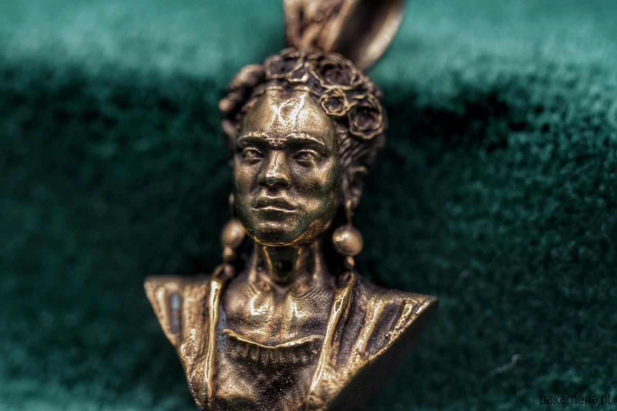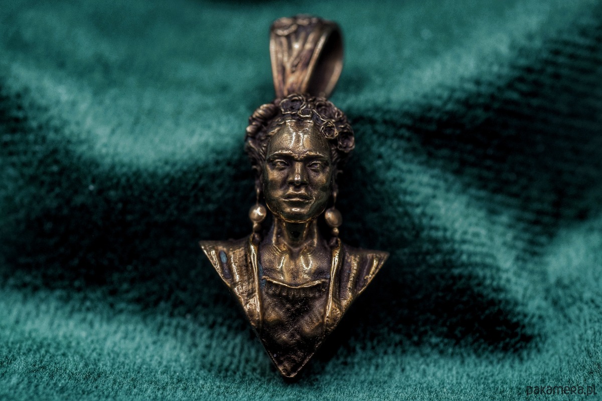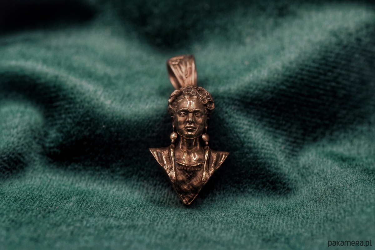 Wisiorek z Fridą Kahlo odlany z brązu.
