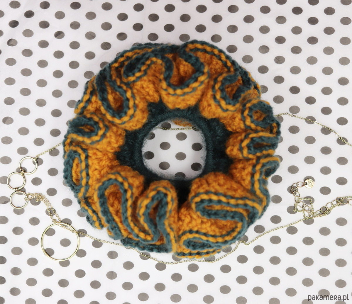 Duża scrunchie frotka do włosów zrobione ręcznie na szydełku.