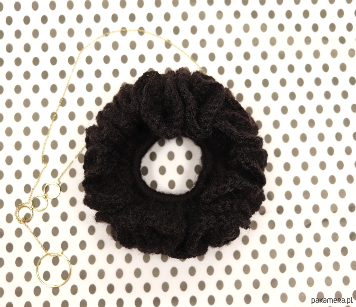 Frotka do włosów scrunchie gumka szydełkowa gorzka czekolada