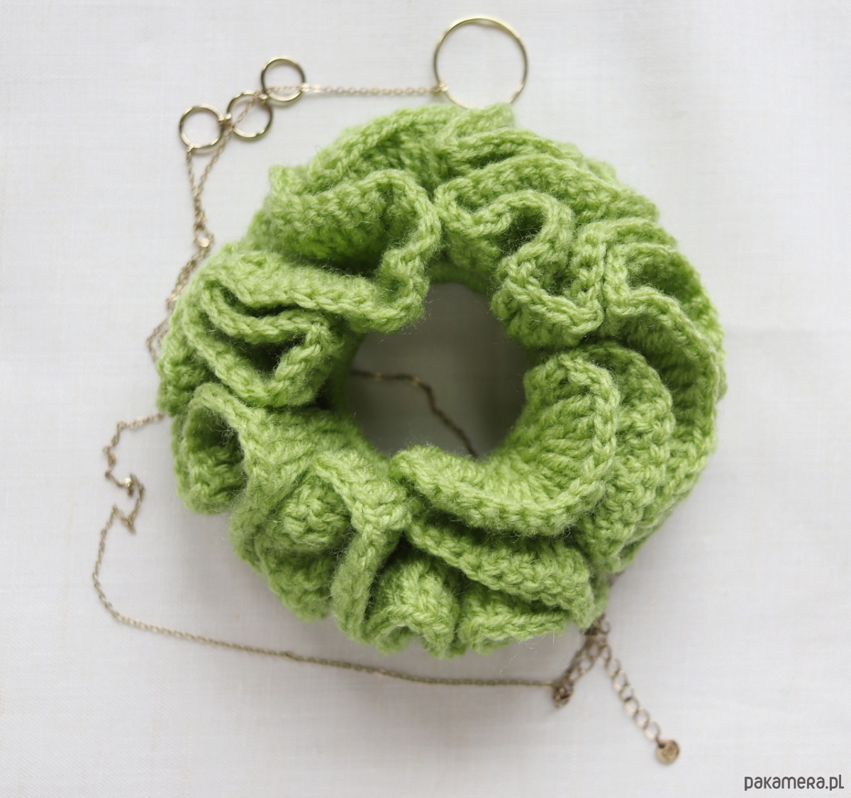 Frotka do włosów scrunchie gumka szydełkowa seledyn