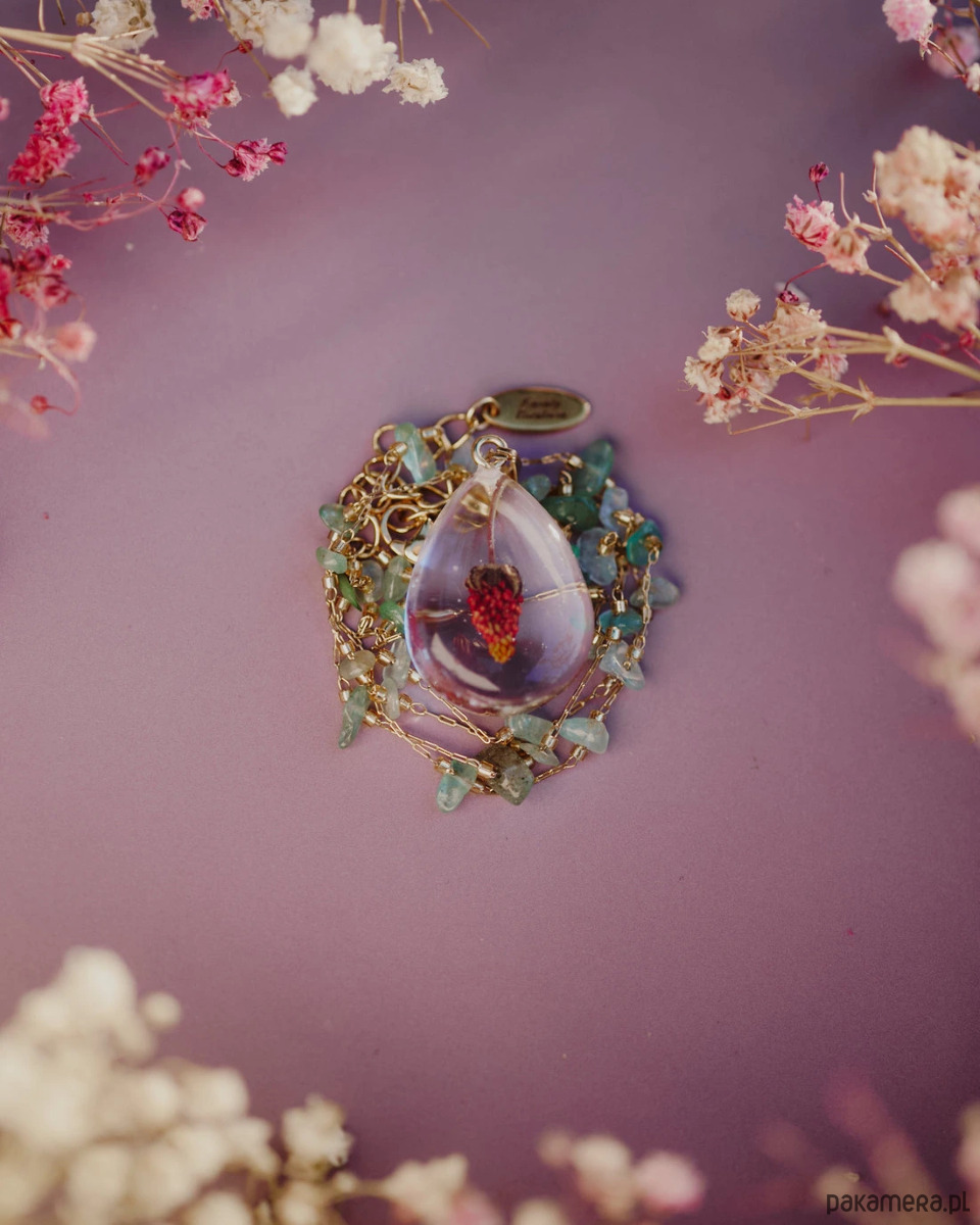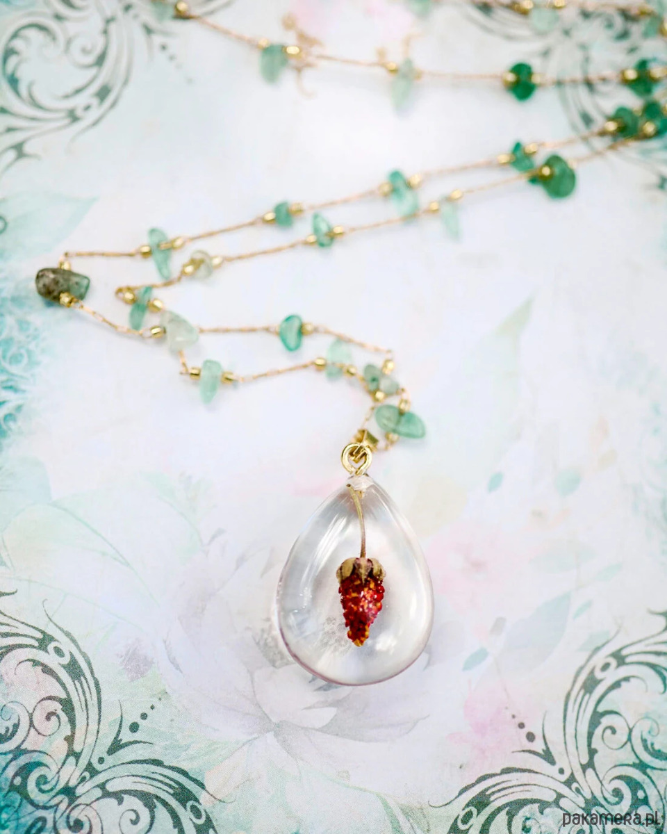 Fruit gems - naszyjnik z poziomką w żywicy z awenturynem