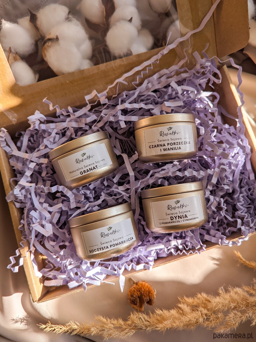 Pudełko zawiera 4, idealnie skomponowane, świece sojowe o pojemności 50ml.