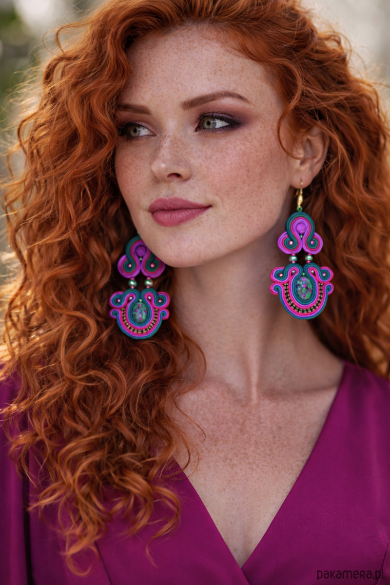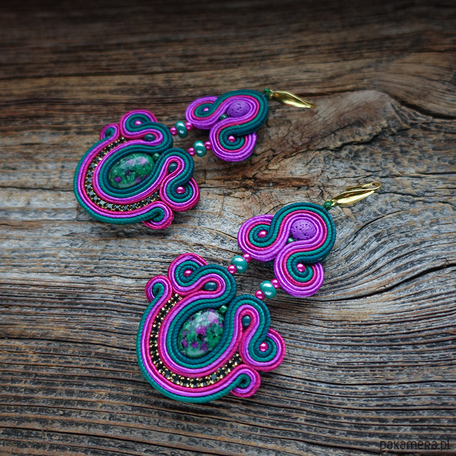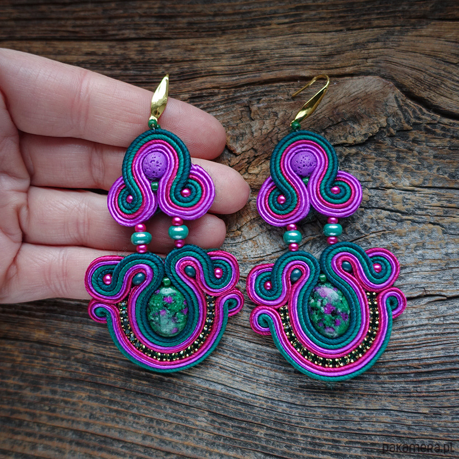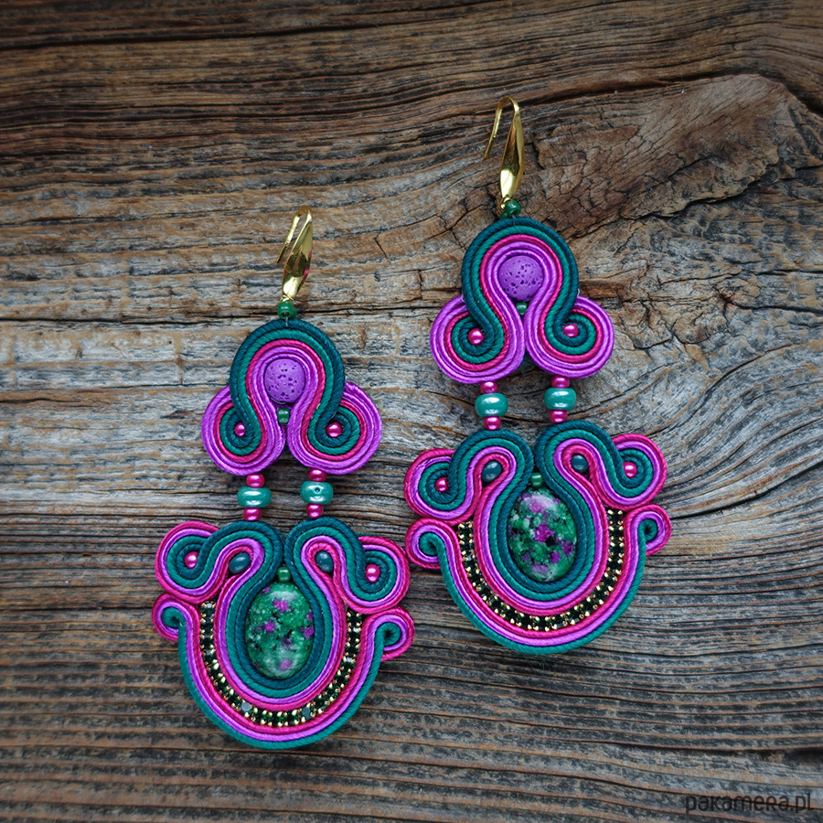 Ręcznie wykonane kolczyki w technice haftu soutache, inspirowane intensywną paletą natury i energią koloru.