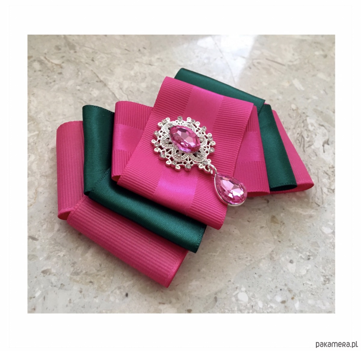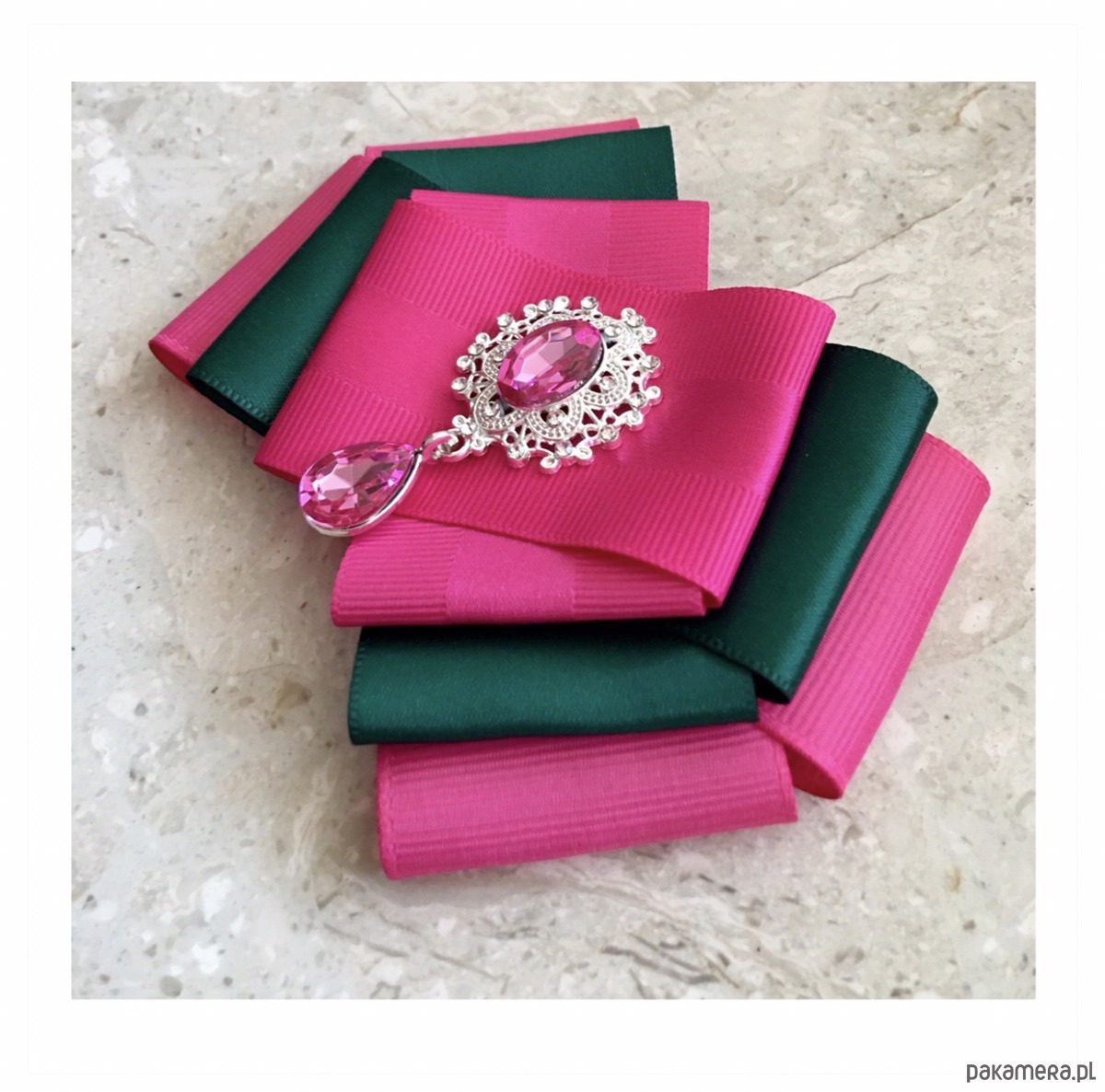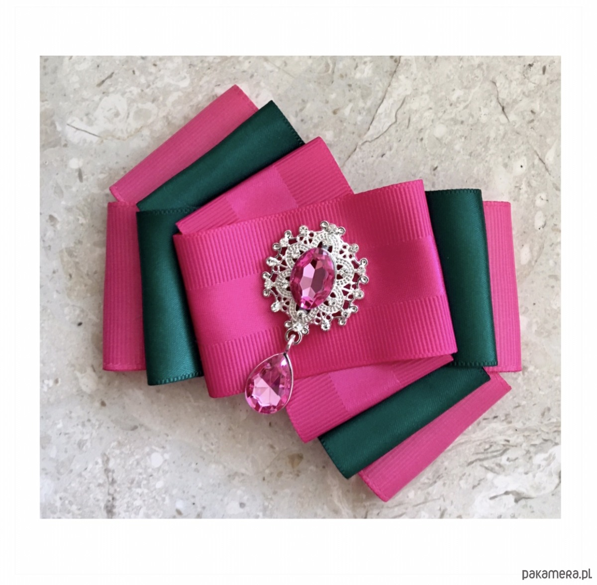 Broszka wykonana z wysokiej jakości taśm i dodatków.