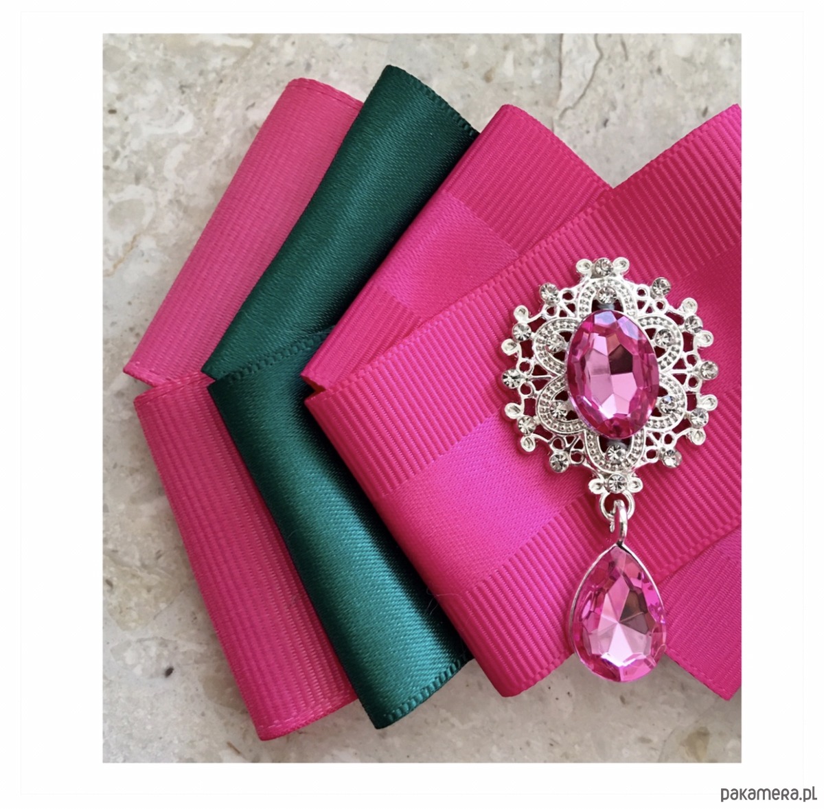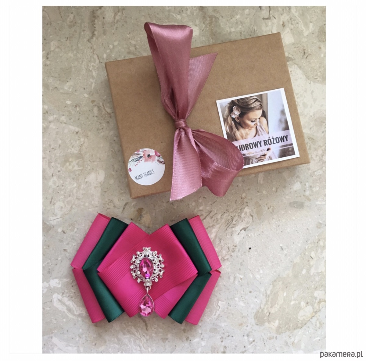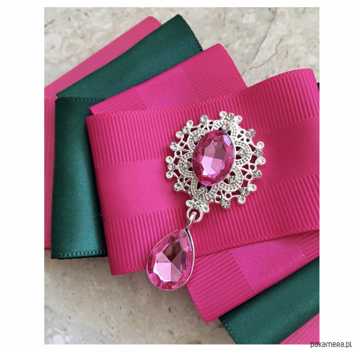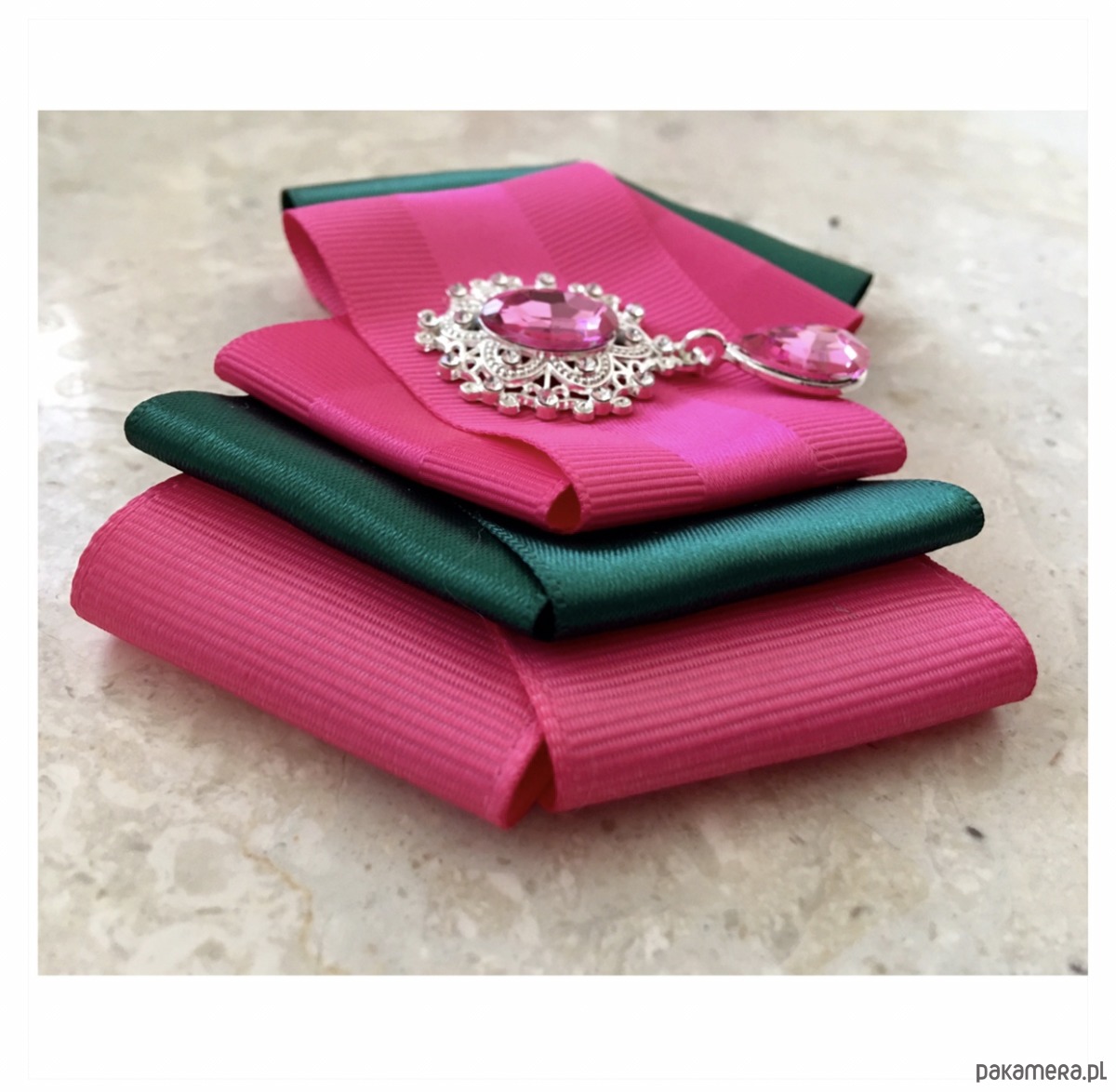 Broszka wykonana z wysokiej jakości taśm i dodatków.