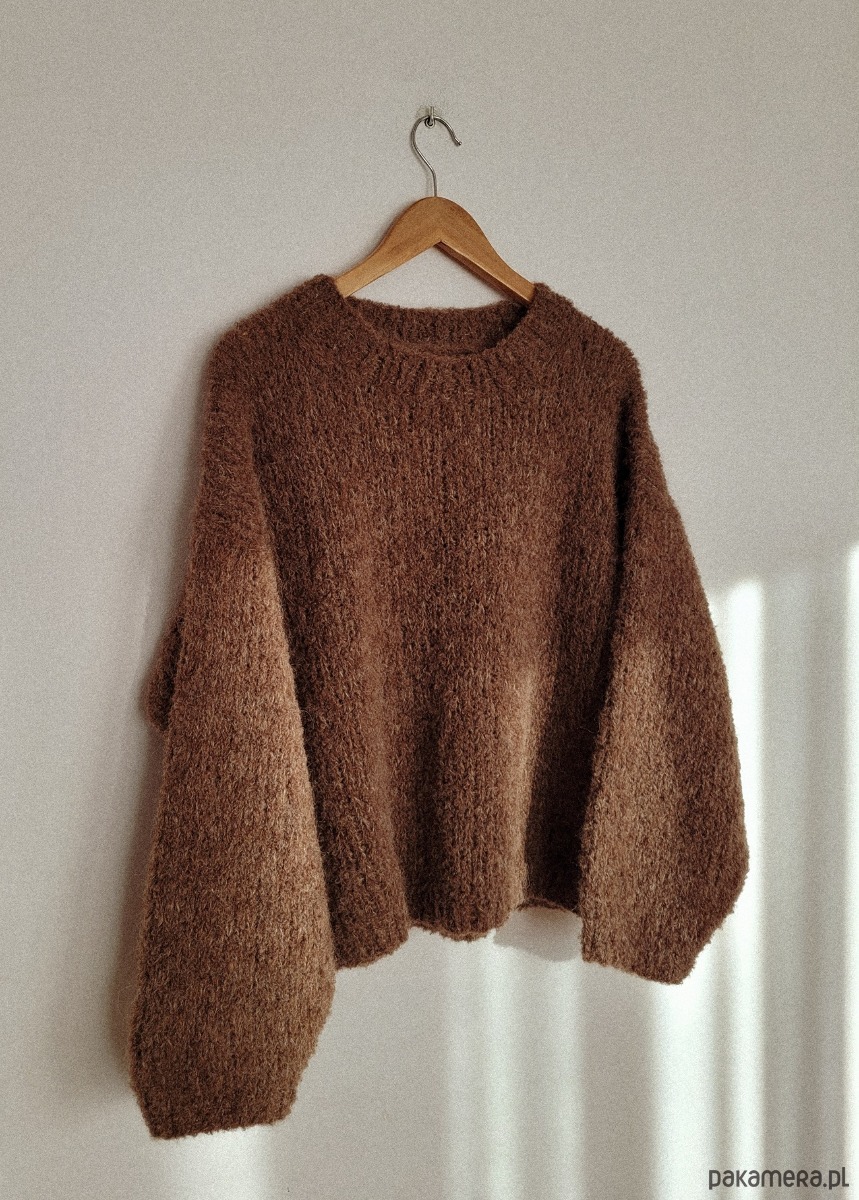 Sweter z kolekcji Full of Knots to bardzo miły i otulający sweter zrobiony ręcznie na drutach z wełny alpaki typu bouclé czyli z wełny, która ma pętelkowo-puchatą strukturę. Jej włókna są nieprzetworzone, co oznacza, że włóczka została tylko uprana oraz, że przed farbowaniem nie została poddana obróbce chemicznej.