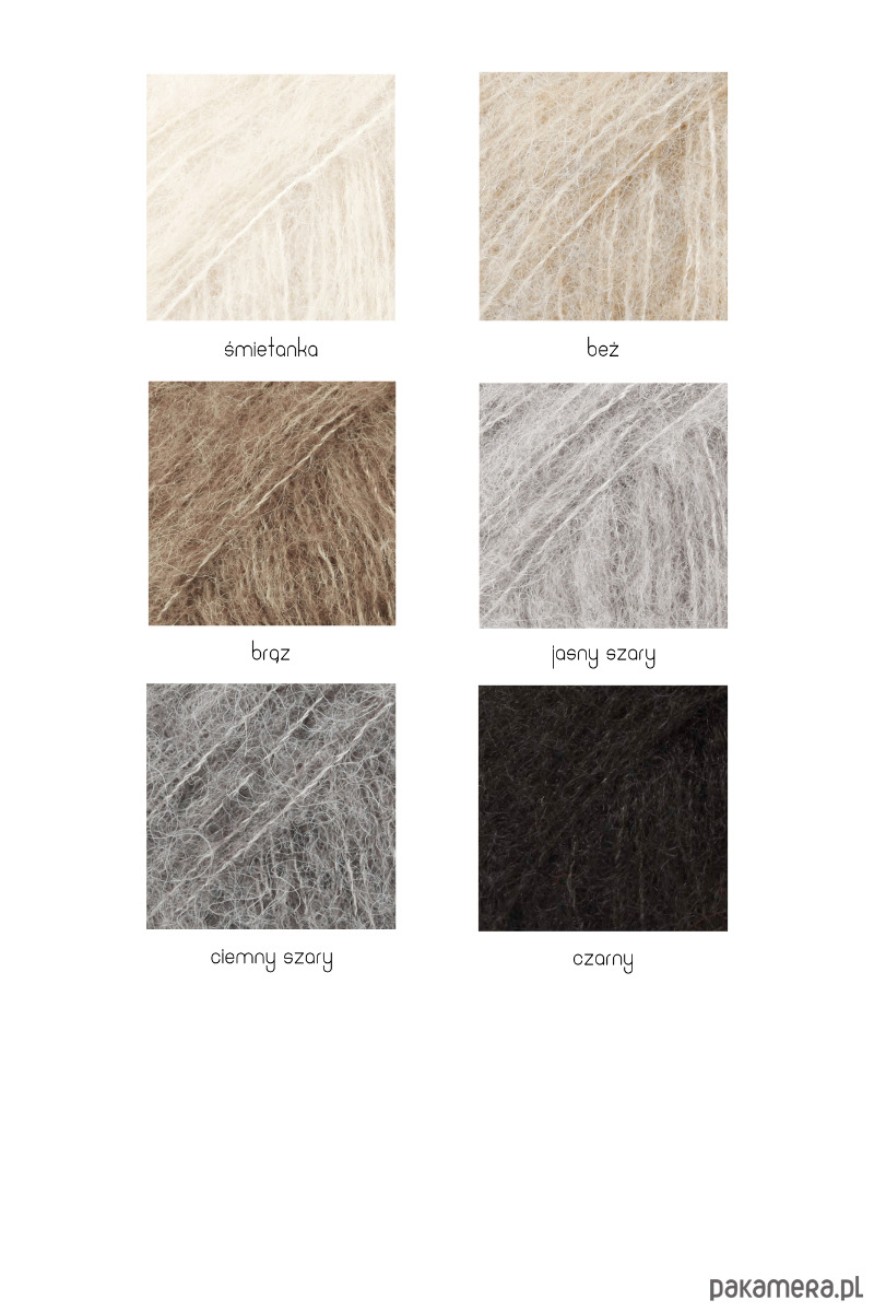 skład: 80% alpaka, 15% wełna peruwiańskich owiec, 5% poliamid