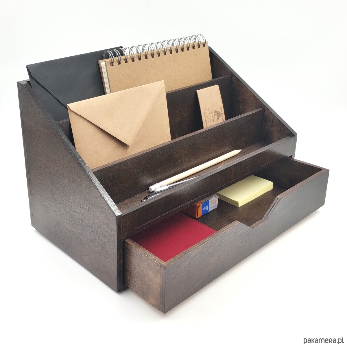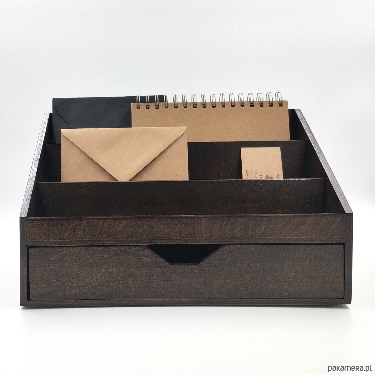 Dlatego przygotowaliśmy organizer na biurko, przybornik, który spełnia wszystkie te kryteria: jest elegancki, praktyczny, uniwersalny. Duży i drewniany. I z szufladką.