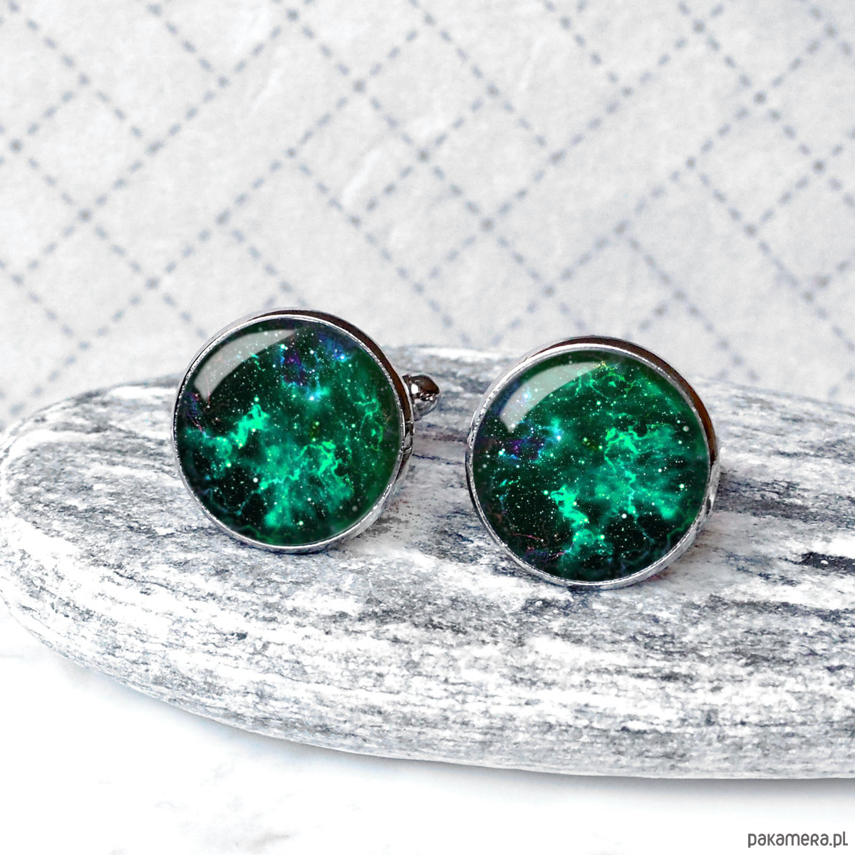 • Oryginalne kaboszony z grafiką w szkle wykonane są ręcznie według mojego projektu, z dbałością o każdy detal, dzięki czemu spinki te są jedyne w swoim rodzaju i niepowtarzalne.