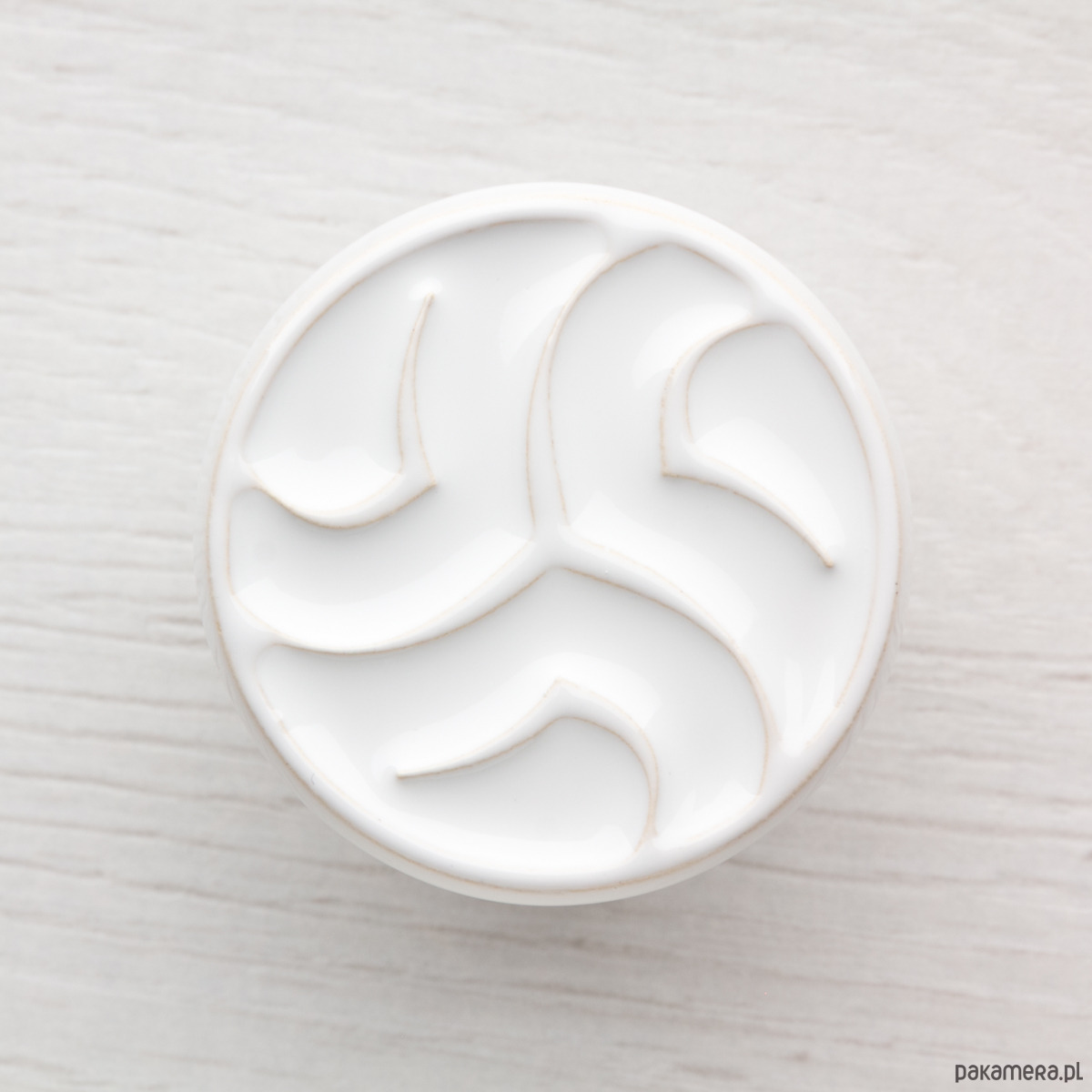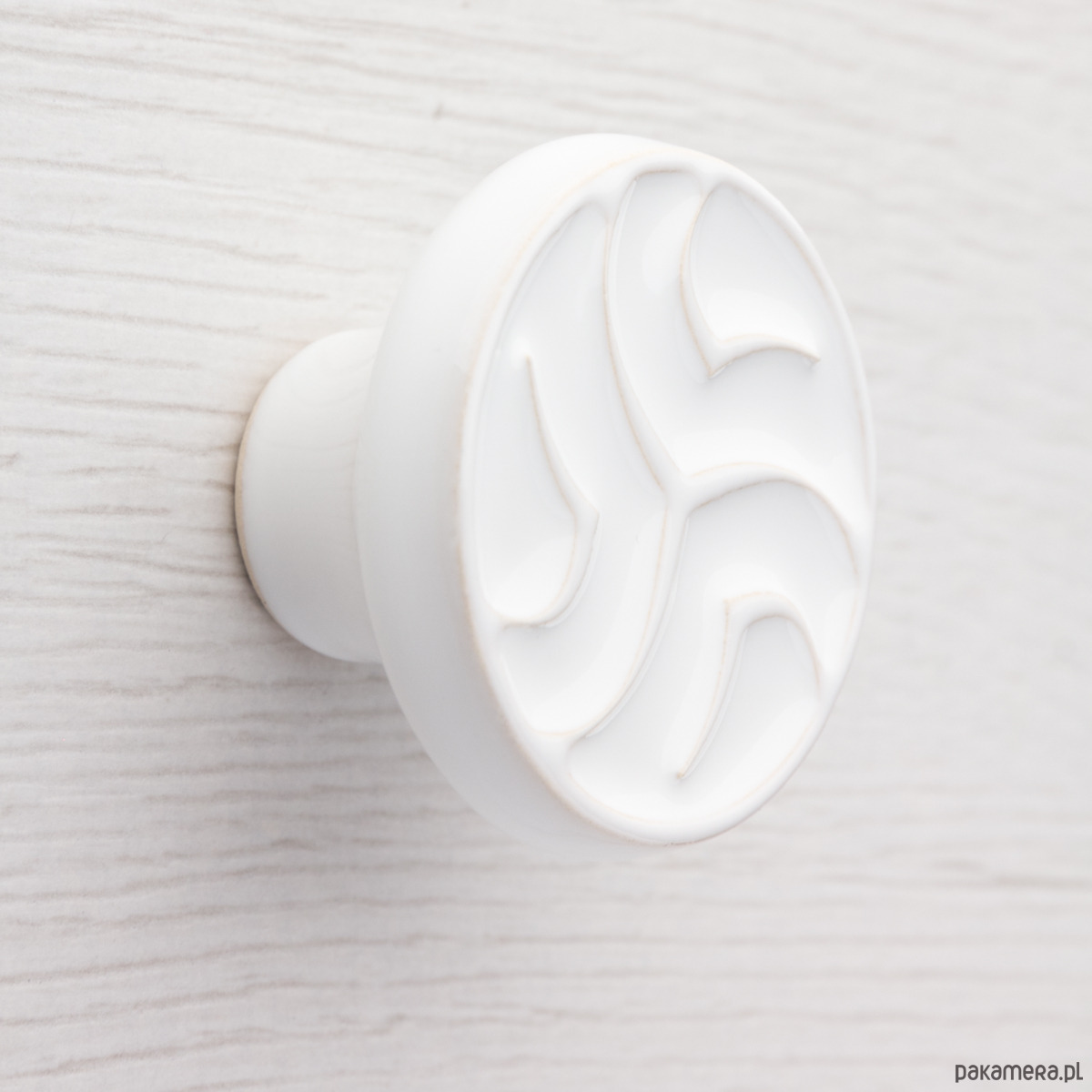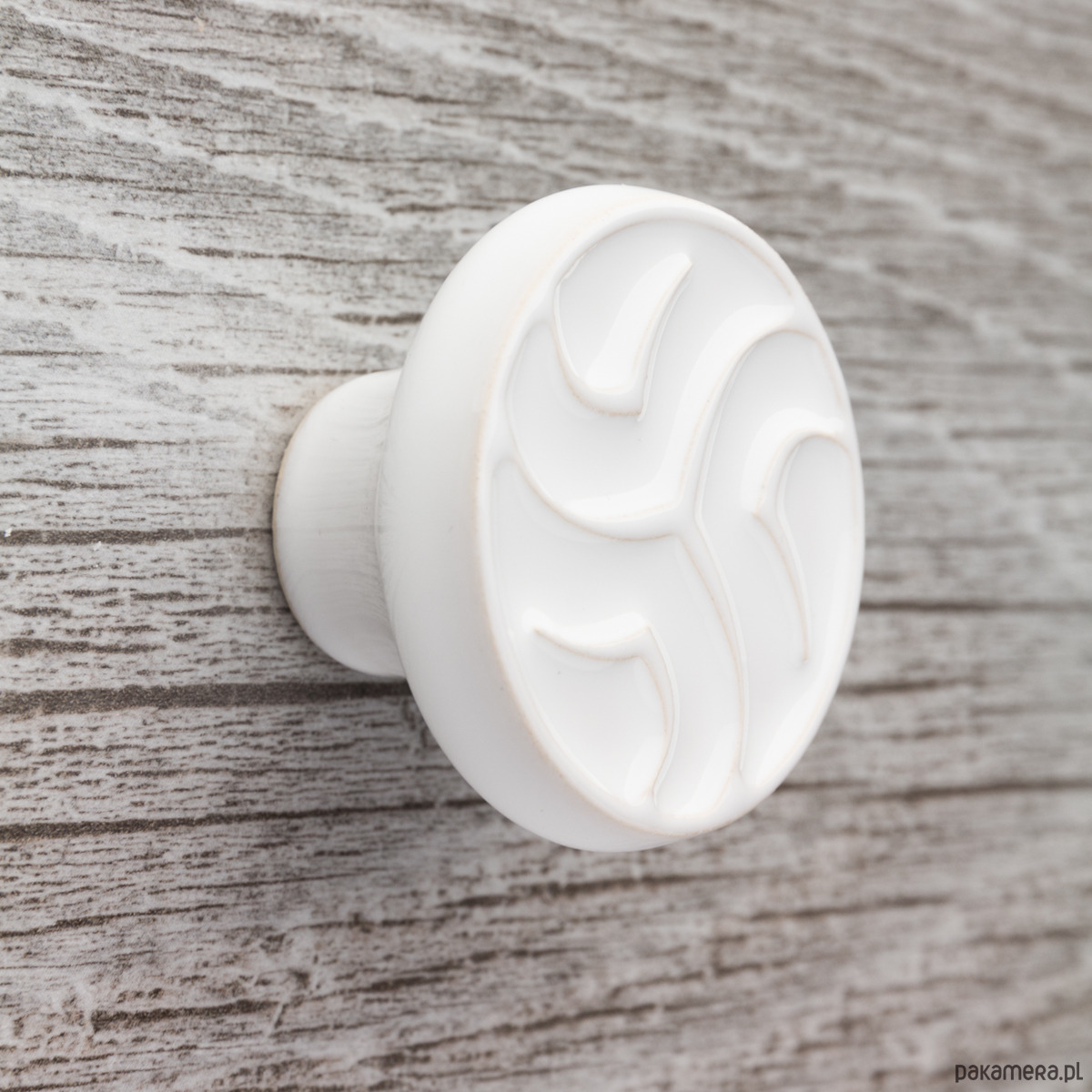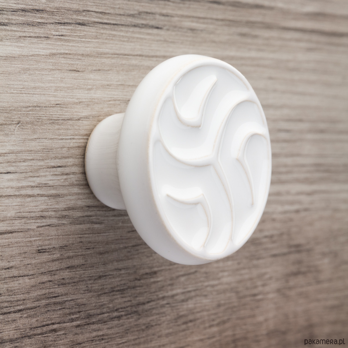 Ceramiczne gałki do mebli - ręcznie wykonane, ornamentowe, wg własnego projektu. Wykonane z jasnej gliny, pokryte błyszczącym szkliwem, wypalone dwukrotnie w wysokiej temperaturze.