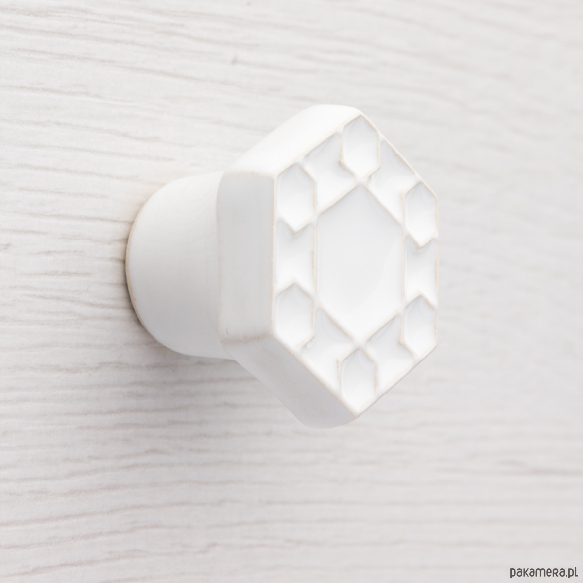 Ceramiczne gałki do mebli - ręcznie wykonane, ornamentowe, wg własnego projektu. Wykonane z jasnej gliny, pokryte błyszczącym szkliwem, wypalone dwukrotnie w wysokiej temperaturze.