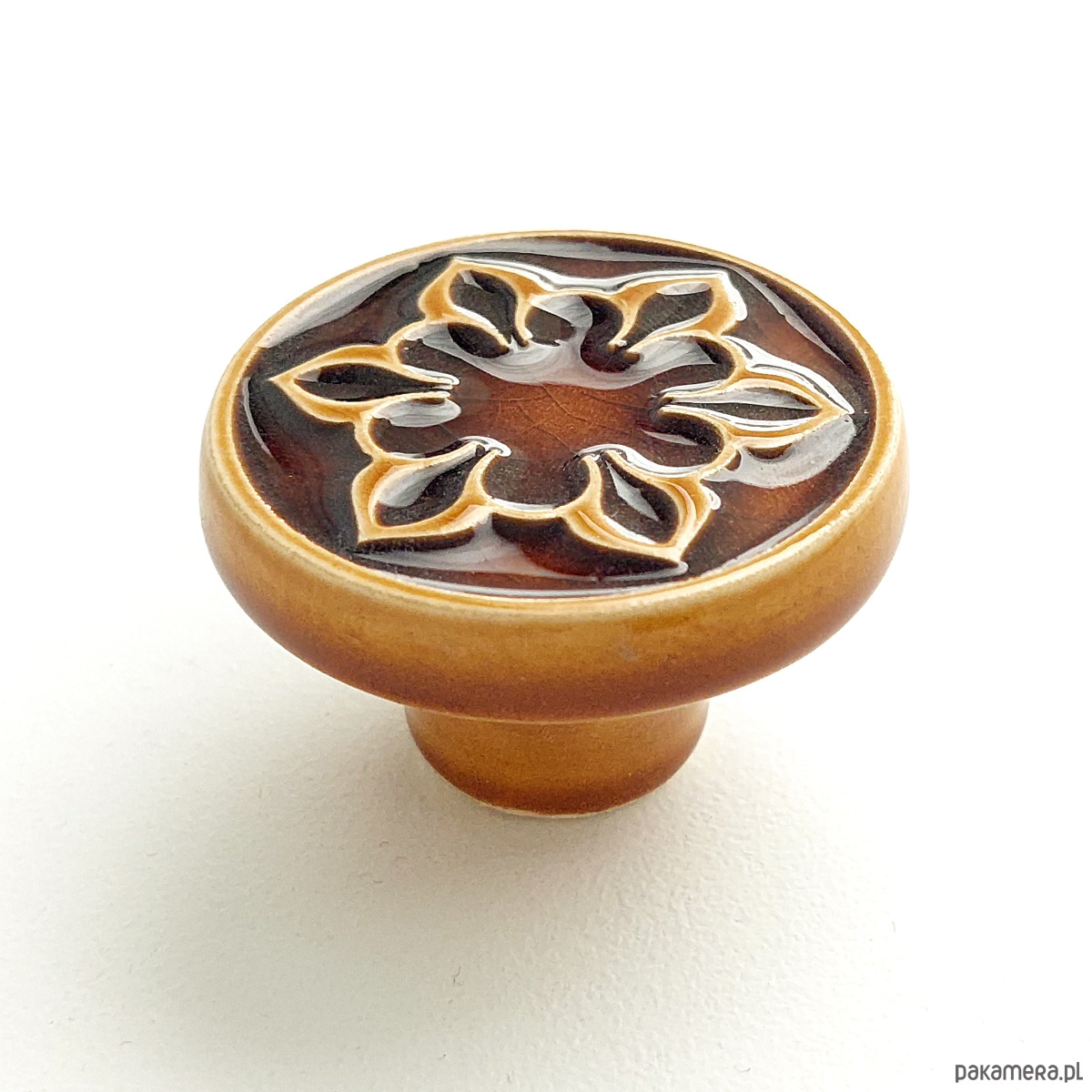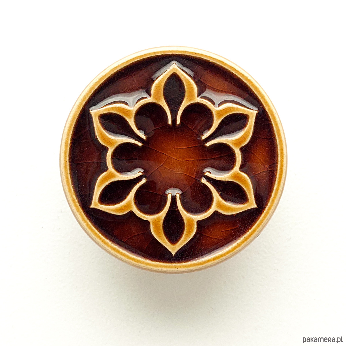Ceramiczne gałki do mebli z lekko wypukłym ornamentem. Ręcznie wykonane z jasnej gliny, pokryte błyszczącym szkliwem, wypalone dwukrotnie w wysokiej temperaturze. Twoje meble zyskają nowy, niepowtarzalny, jedyny w swoim rodzaju wygląd.