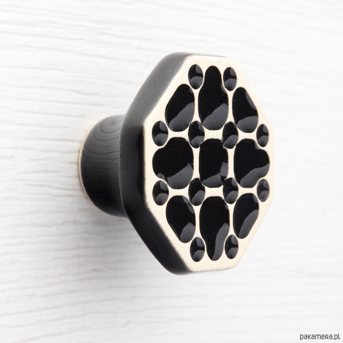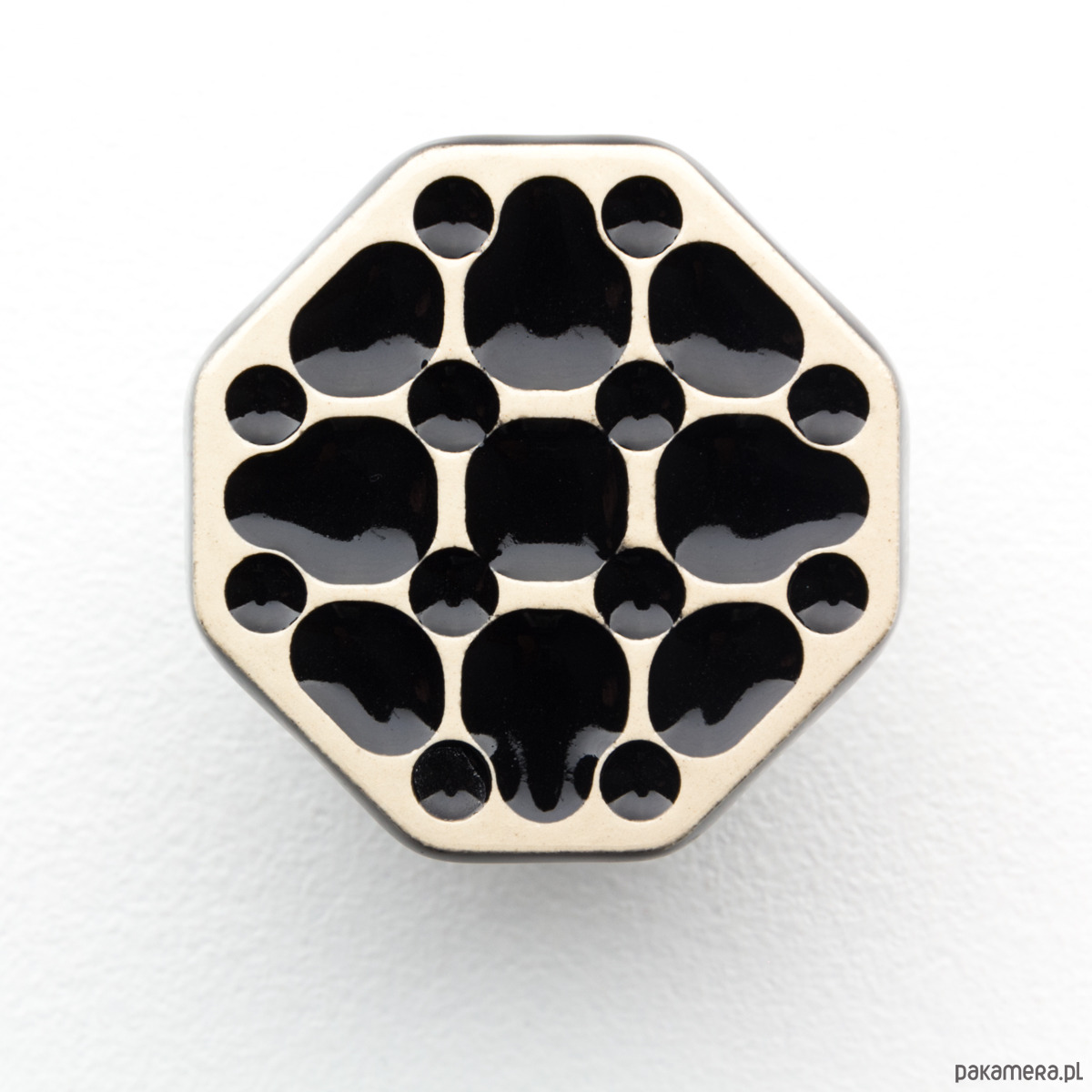 Ceramiczne gałki do mebli - ręcznie wykonane, ornamentowe, wg własnego projektu. Wykonane z jasnej gliny, pokryte błyszczącym szkliwem, wypalone dwukrotnie w wysokiej temperaturze.