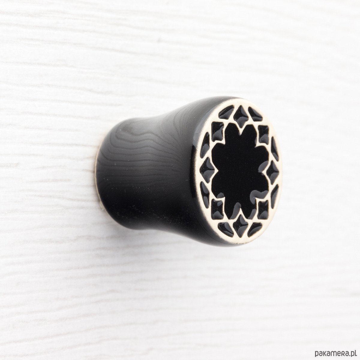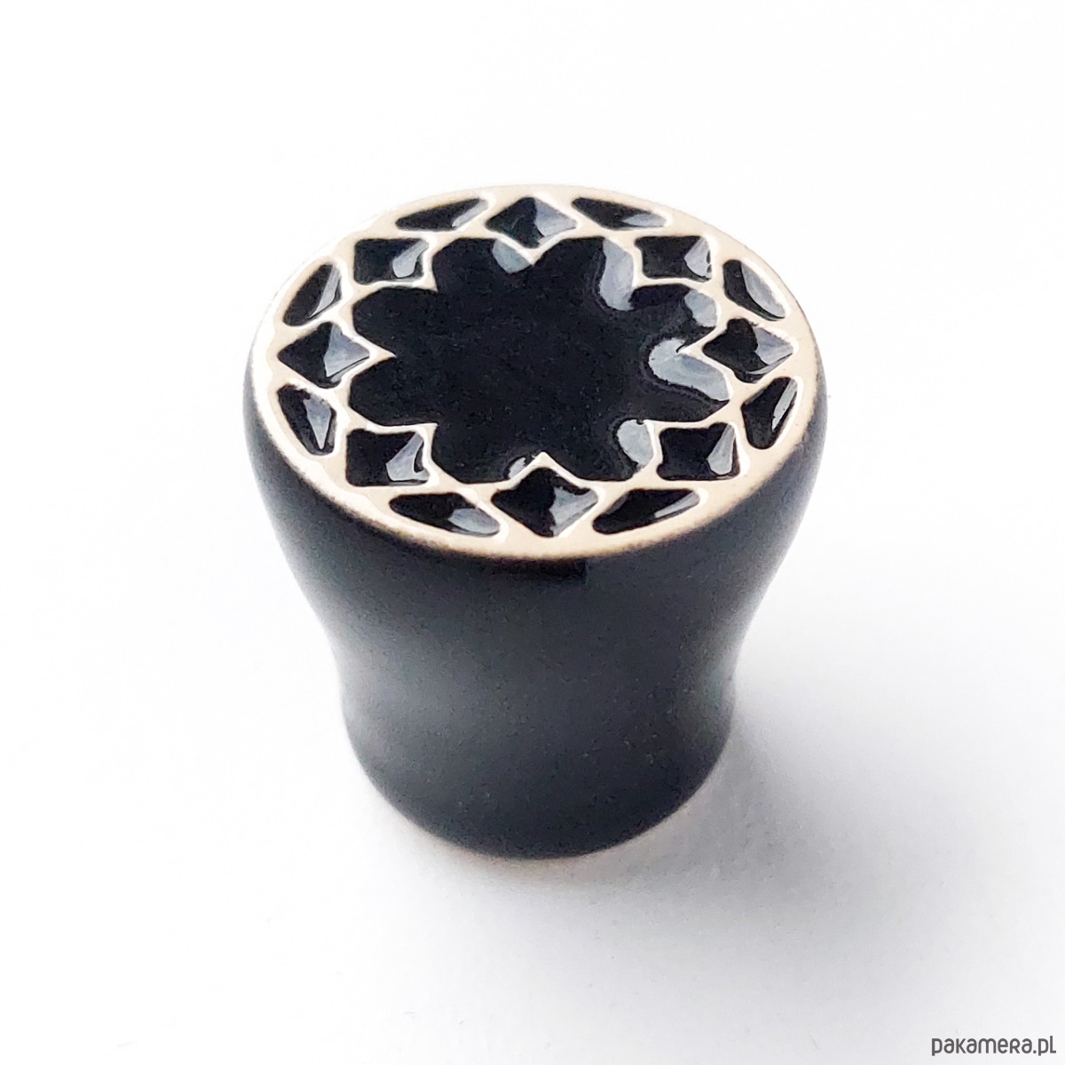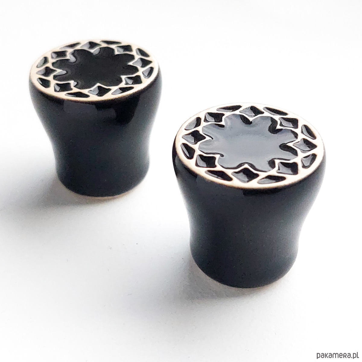 Ceramiczne gałki do mebli - ręcznie wykonane, ornamentowe, wg własnego projektu. Wykonane z jasnej gliny, pokryte błyszczącym szkliwem, wypalone dwukrotnie w wysokiej temperaturze.