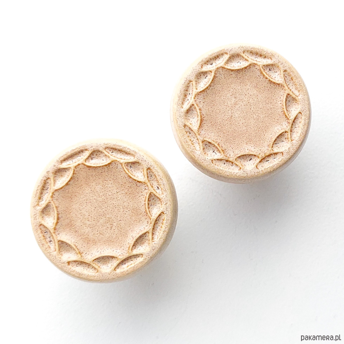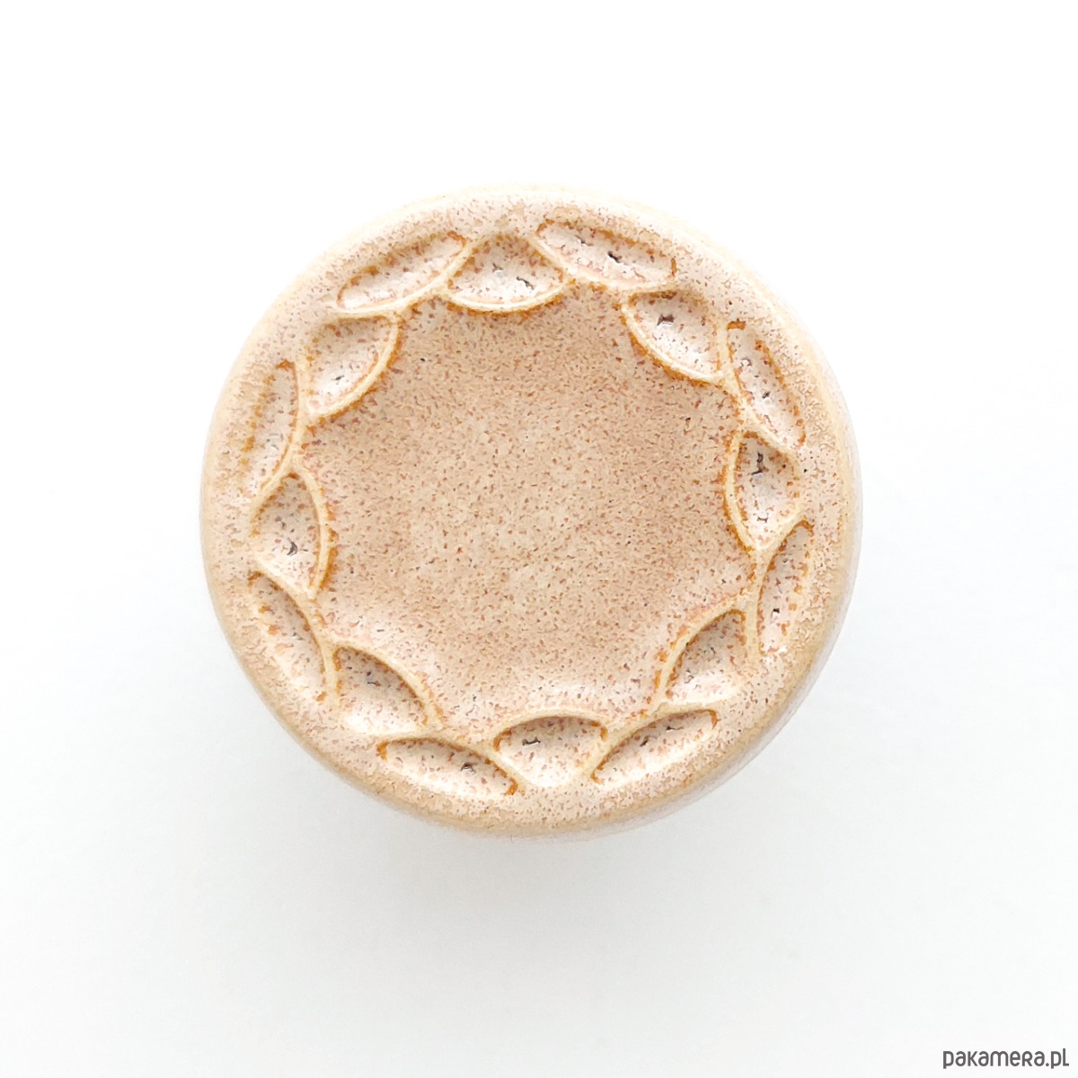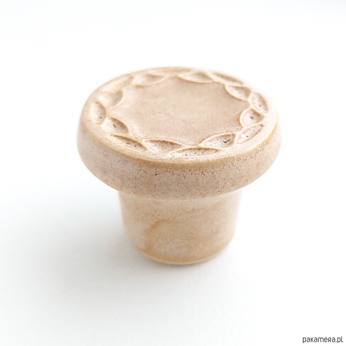 Ceramiczna gałka do mebli - ręcznie wykonana, ornamentowa, wg własnego projektu. Wykonana z jasnej gliny, pokryta satynowym szkliwem, wypalona dwukrotnie w wysokiej temperaturze.