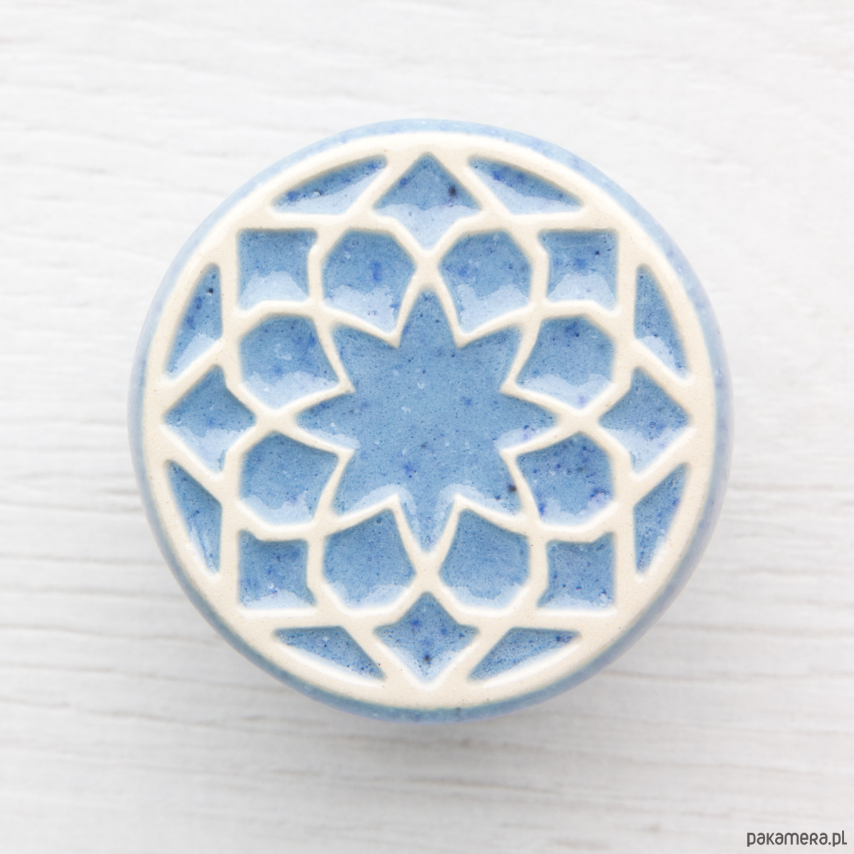 Ceramiczne gałki do mebli - ręcznie wykonane, ornamentowe, wg własnego projektu. Ręcznie wykonane z jasnej gliny, pokryte błyszczącym szkliwem, wypalone dwukrotnie w wysokiej temperaturze.