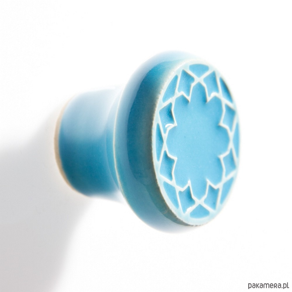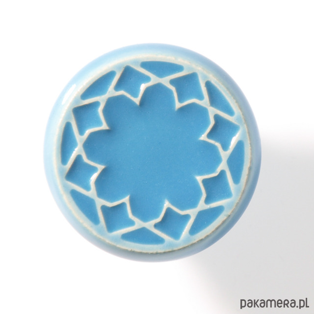 Ceramiczne gałki do mebli - ręcznie wykonane, ornamentowe, wg własnego projektu. Wykonane z jasnej gliny, pokryte błyszczącym, szkliwem, wypalone dwukrotnie w wysokiej temperaturze.