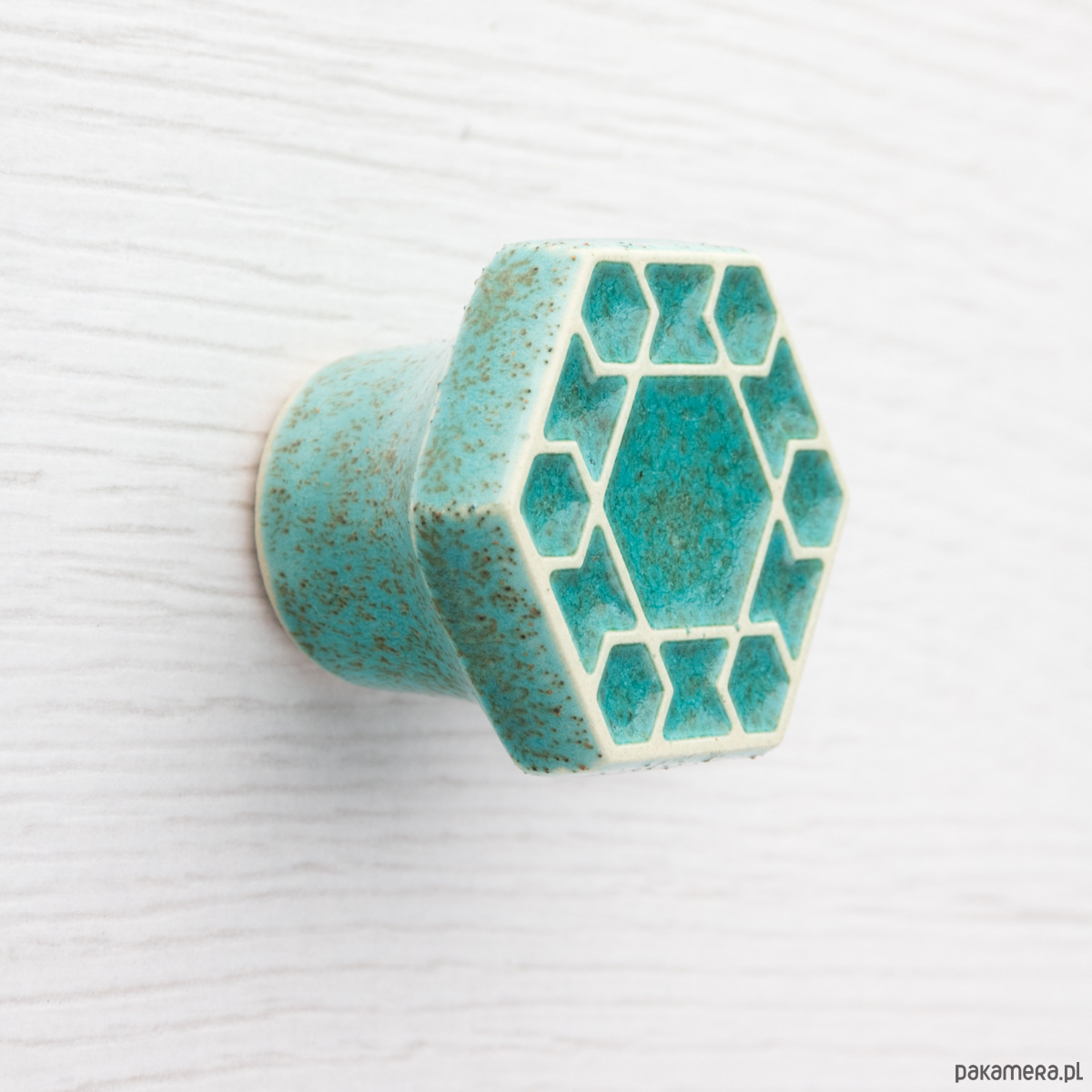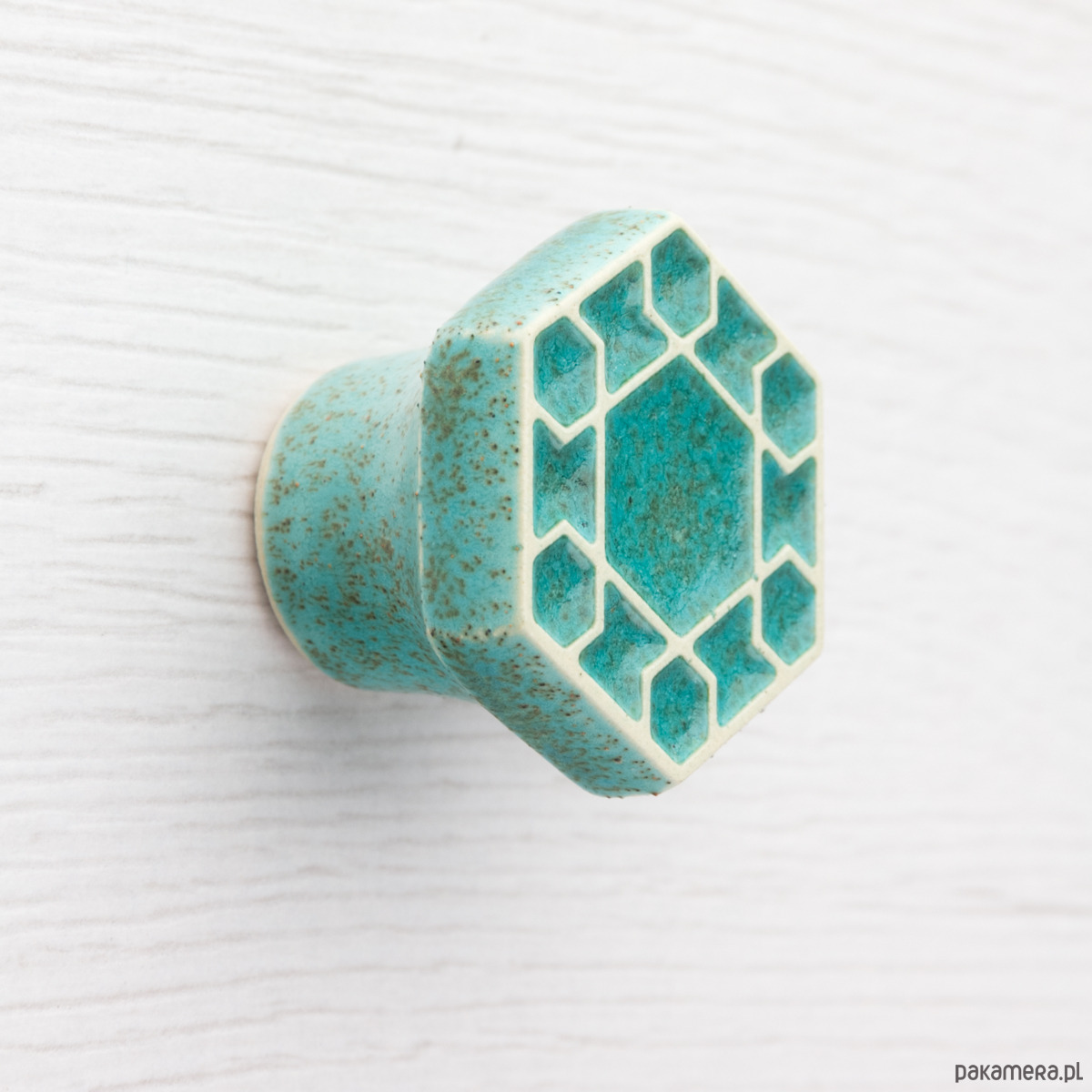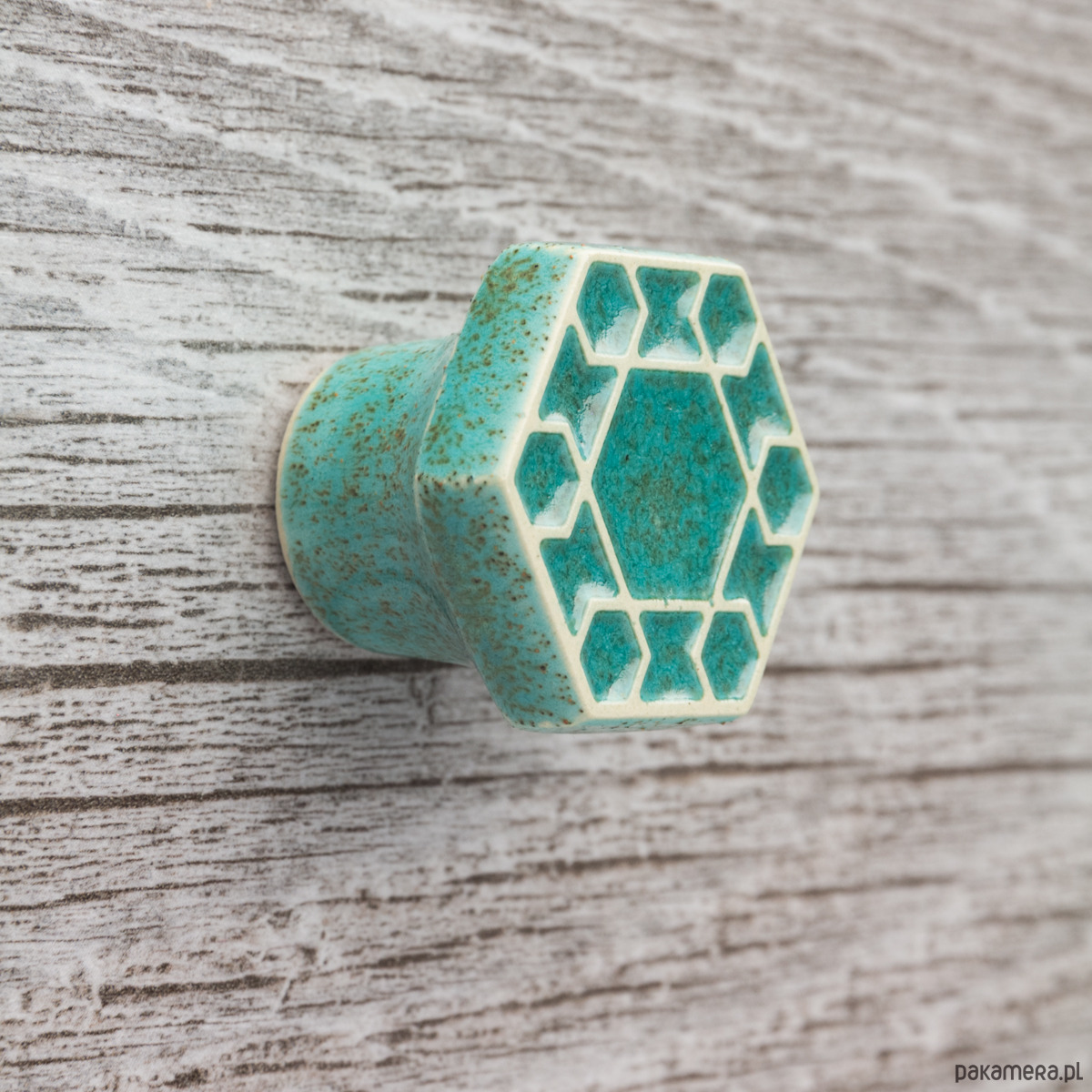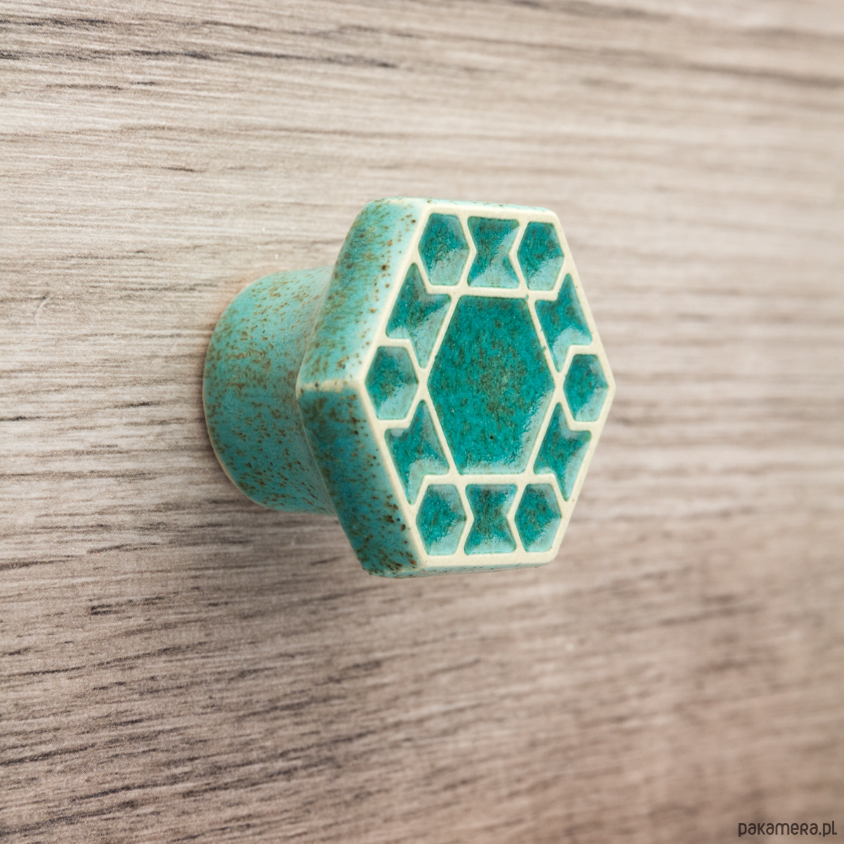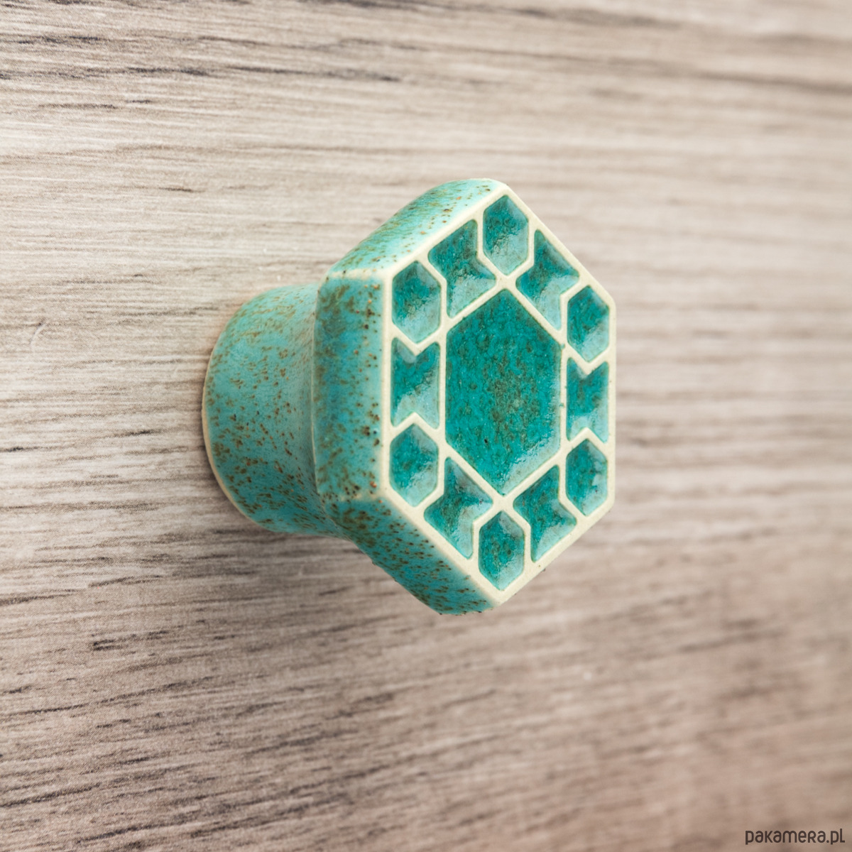 Ceramiczna gałka do mebli z lekko wypukłym ornamentem. Ręcznie wykonana z jasnej gliny, pokryta szkliwem o satynowym połysku, wypalona dwukrotnie w wysokiej temperaturze.Twoje meble zyskają nowy, niepowtarzalny, jedyny w swoim rodzaju wygląd.