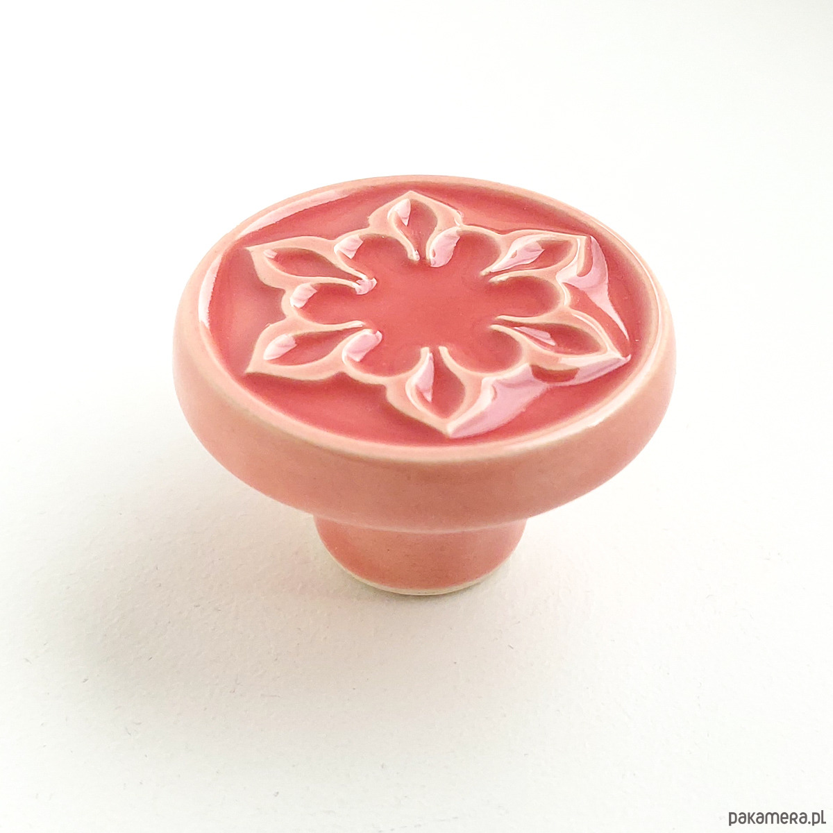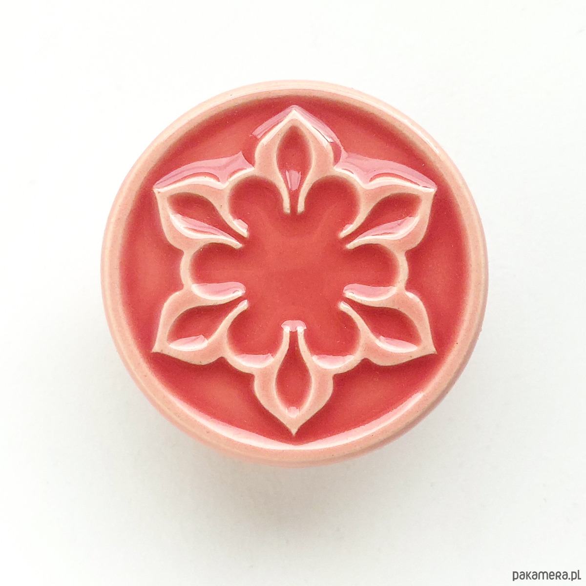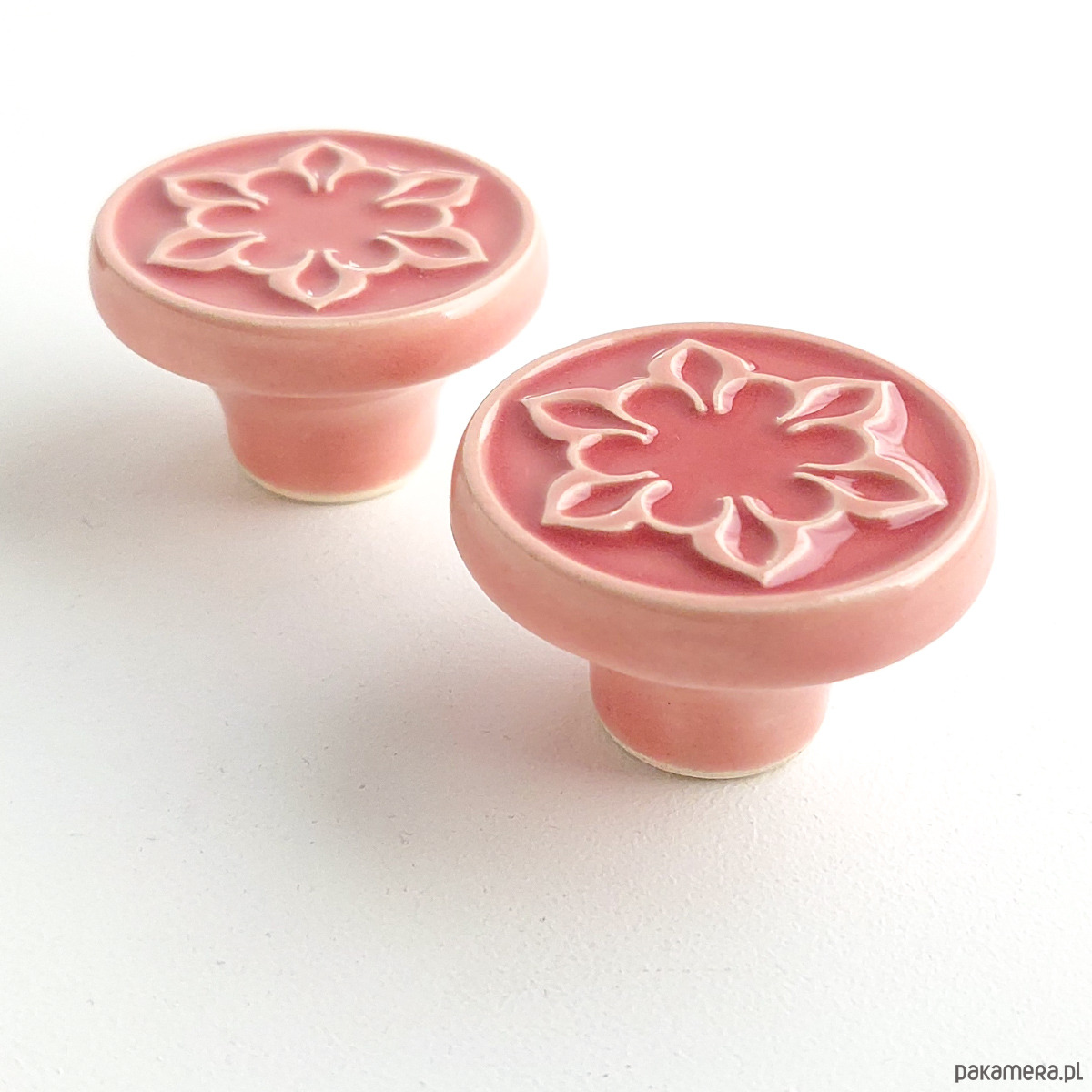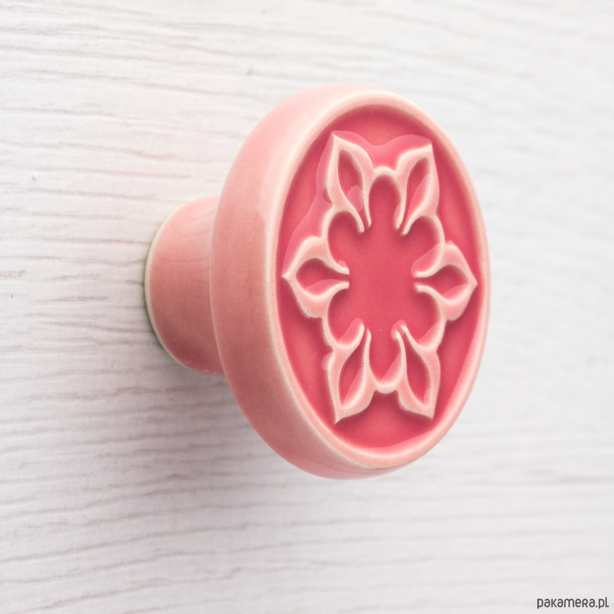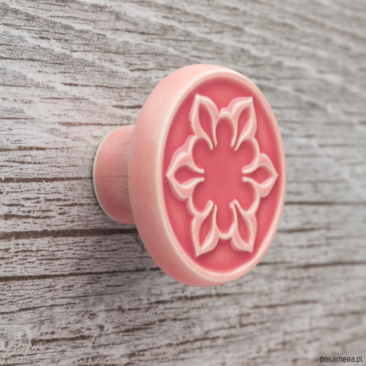 Ceramiczne gałki do mebli - ręcznie wykonane, ornamentowe, wg własnego projektu. Wykonane z jasnej gliny, pokryte błyszczącym szkliwem, wypalone dwukrotnie w wysokiej temperaturze.