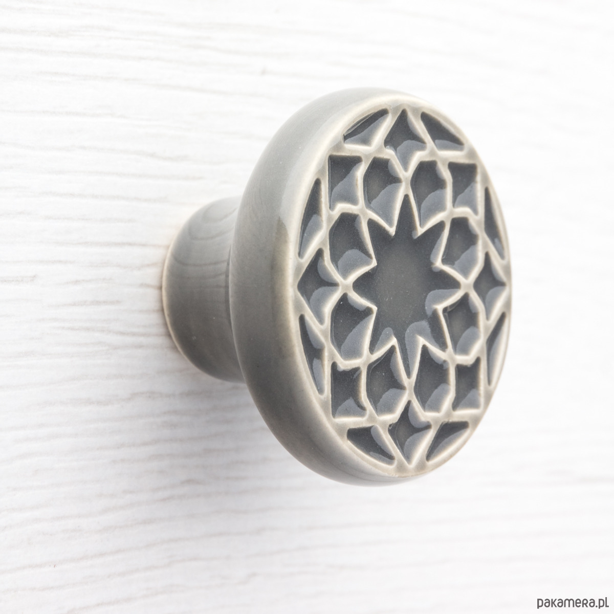 Ceramiczne gałki do mebli - ręcznie wykonane, ornamentowe, wg własnego projektu. Wykonane z jasnej gliny, pokryte błyszczącym szkliwem, wypalone dwukrotnie w wysokiej temperaturze.