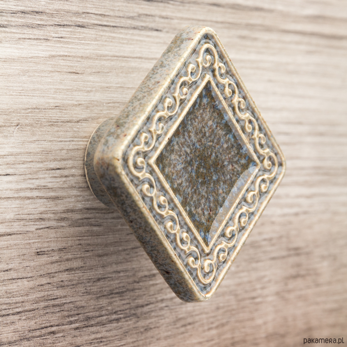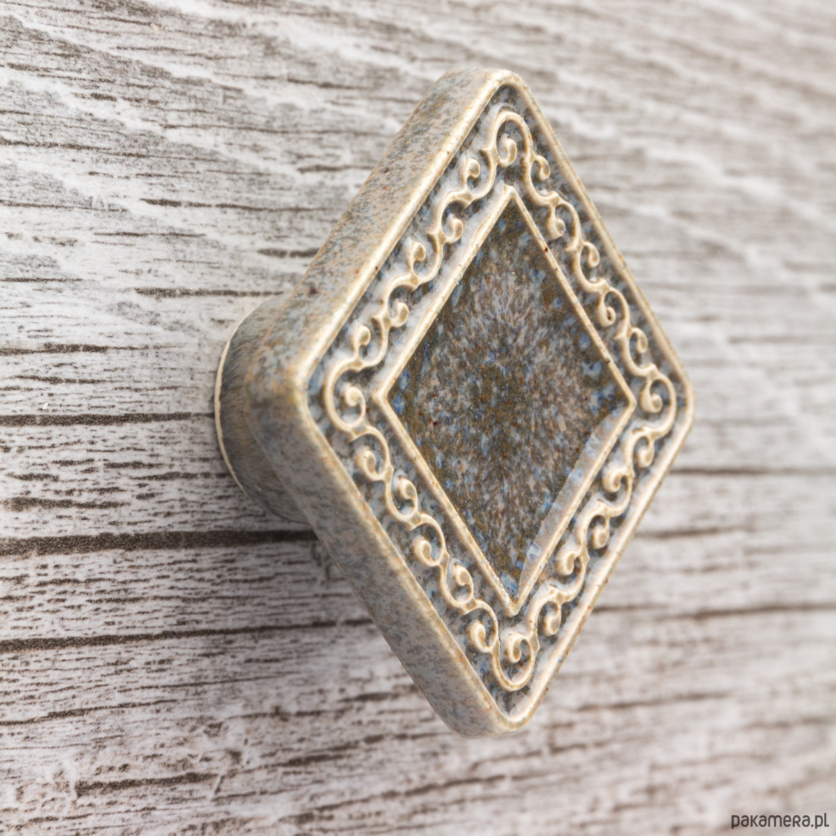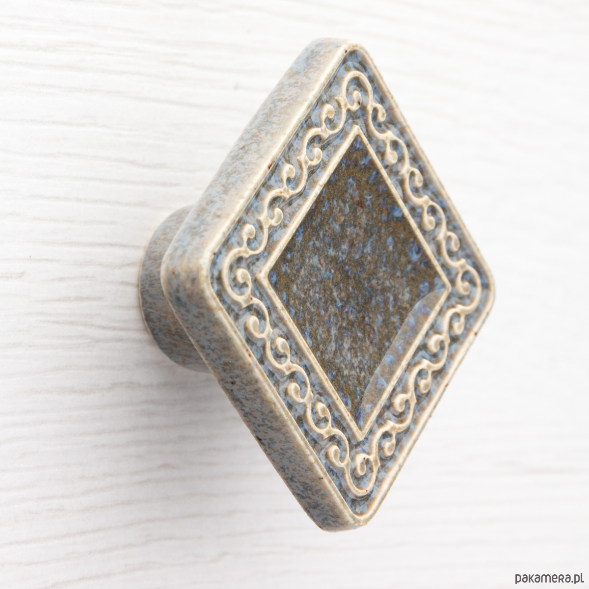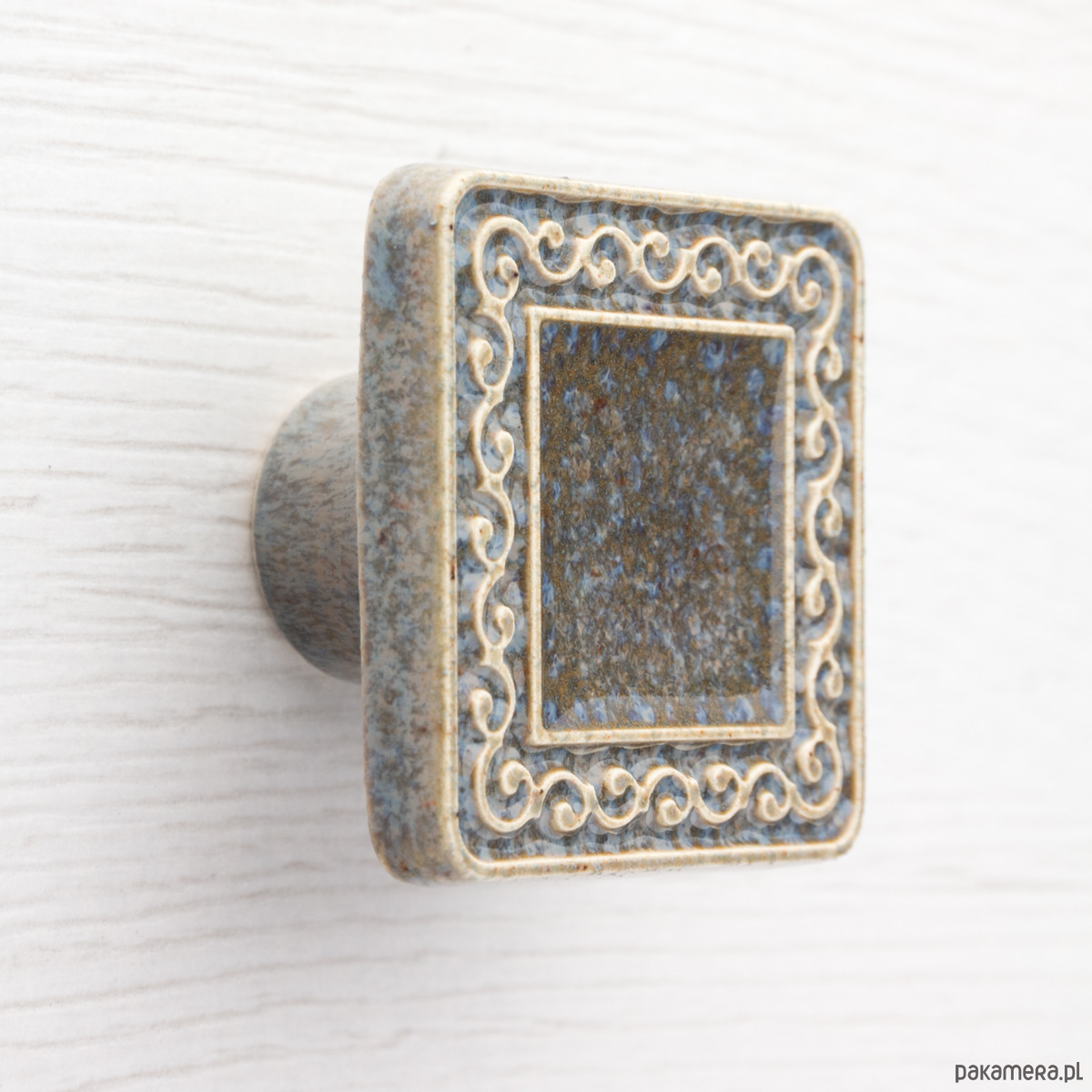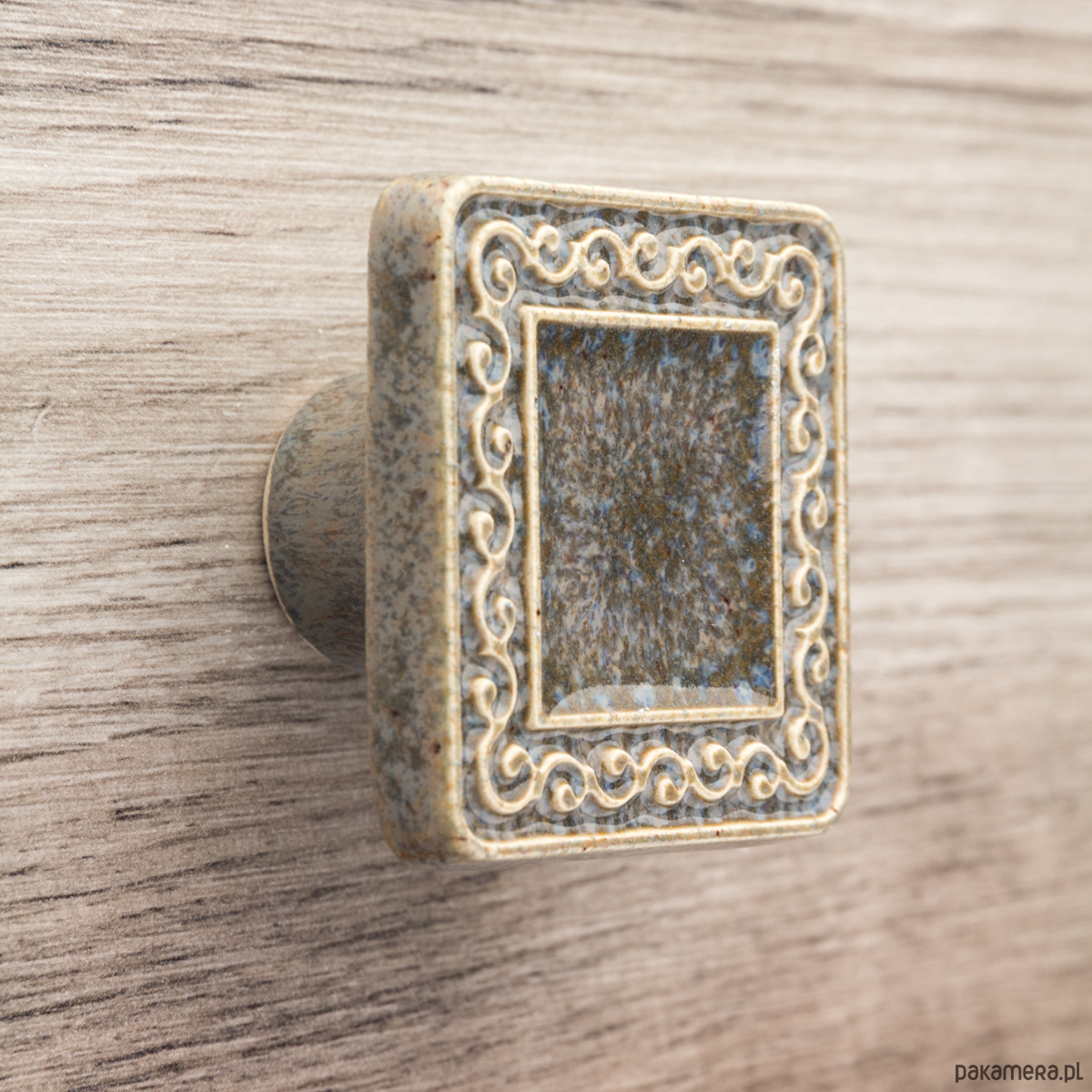 Ceramiczne gałki do mebli - ręcznie wykonane, ornamentowe, wg własnego projektu. Wykonane z jasnej gliny, pokryte błyszczącym zielonym szkliwem, wypalone dwukrotnie w wysokiej temperaturze.