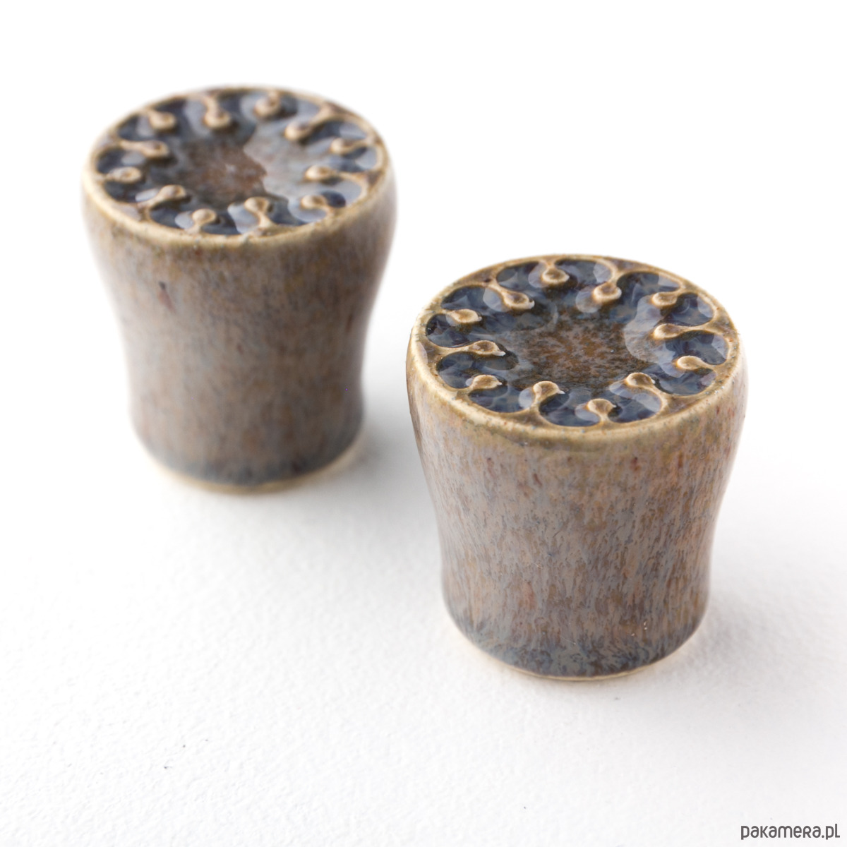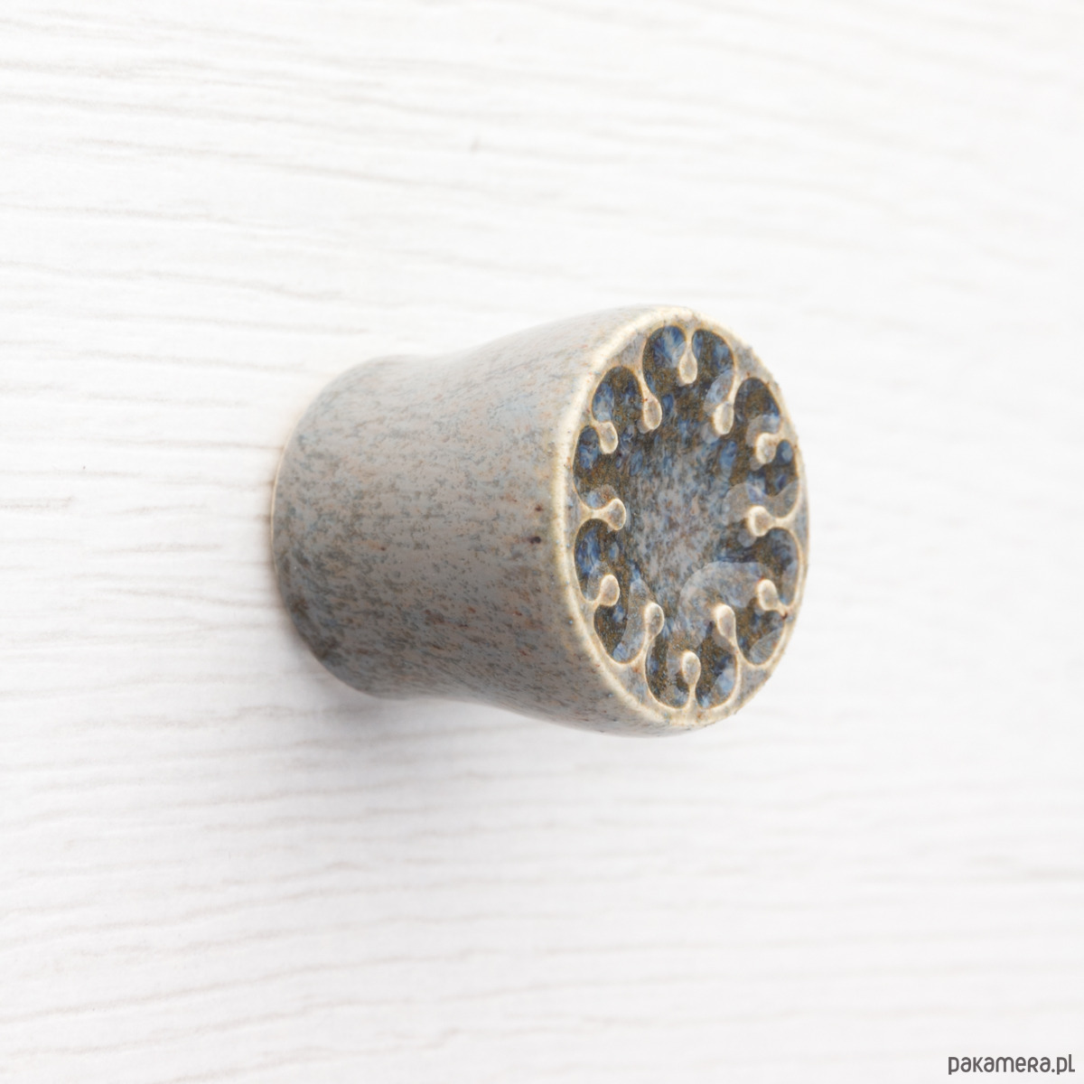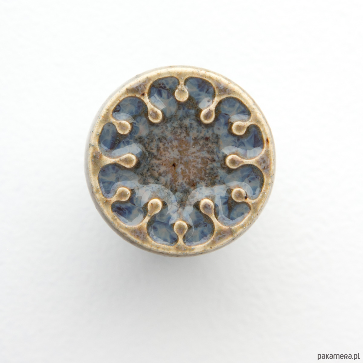Ceramiczne gałki do mebli - ręcznie wykonane, ornamentowe, wg własnego projektu. Wykonane z jasnej gliny, pokryte błyszczącym szkliwem, wypalone dwukrotnie w wysokiej temperaturze.