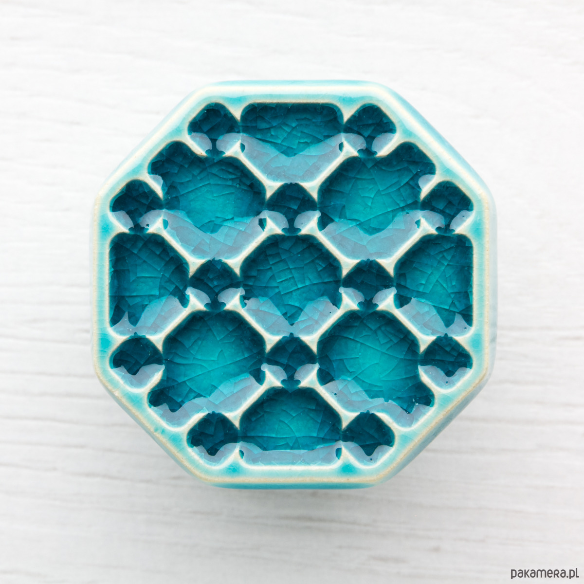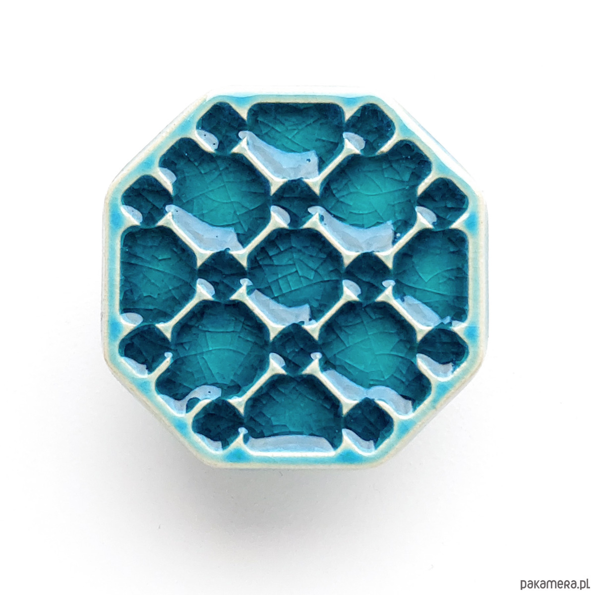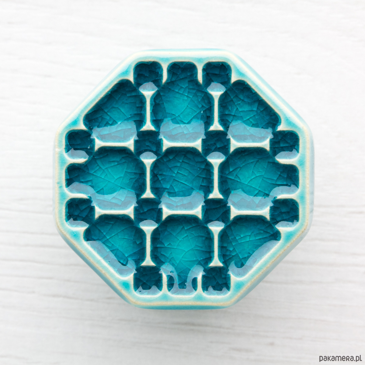 Ceramiczne gałki do mebli - ręcznie wykonane, ornamentowe, wg własnego projektu. Wykonane z jasnej gliny, pokryte błyszczącym szkliwem, wypalone dwukrotnie w wysokiej temperaturze.
