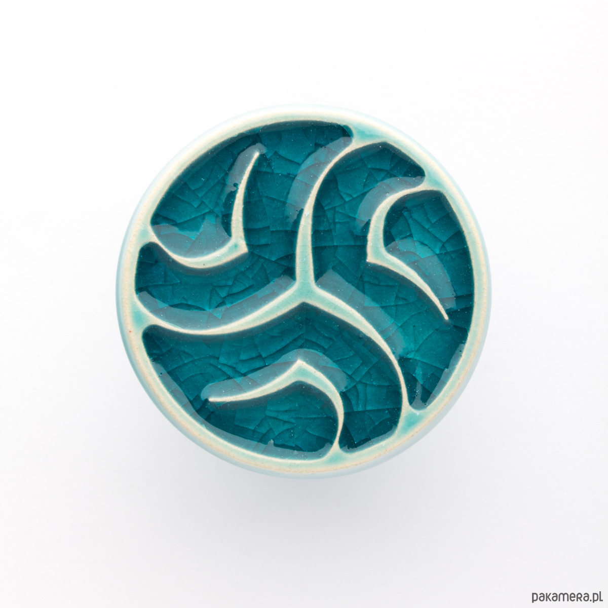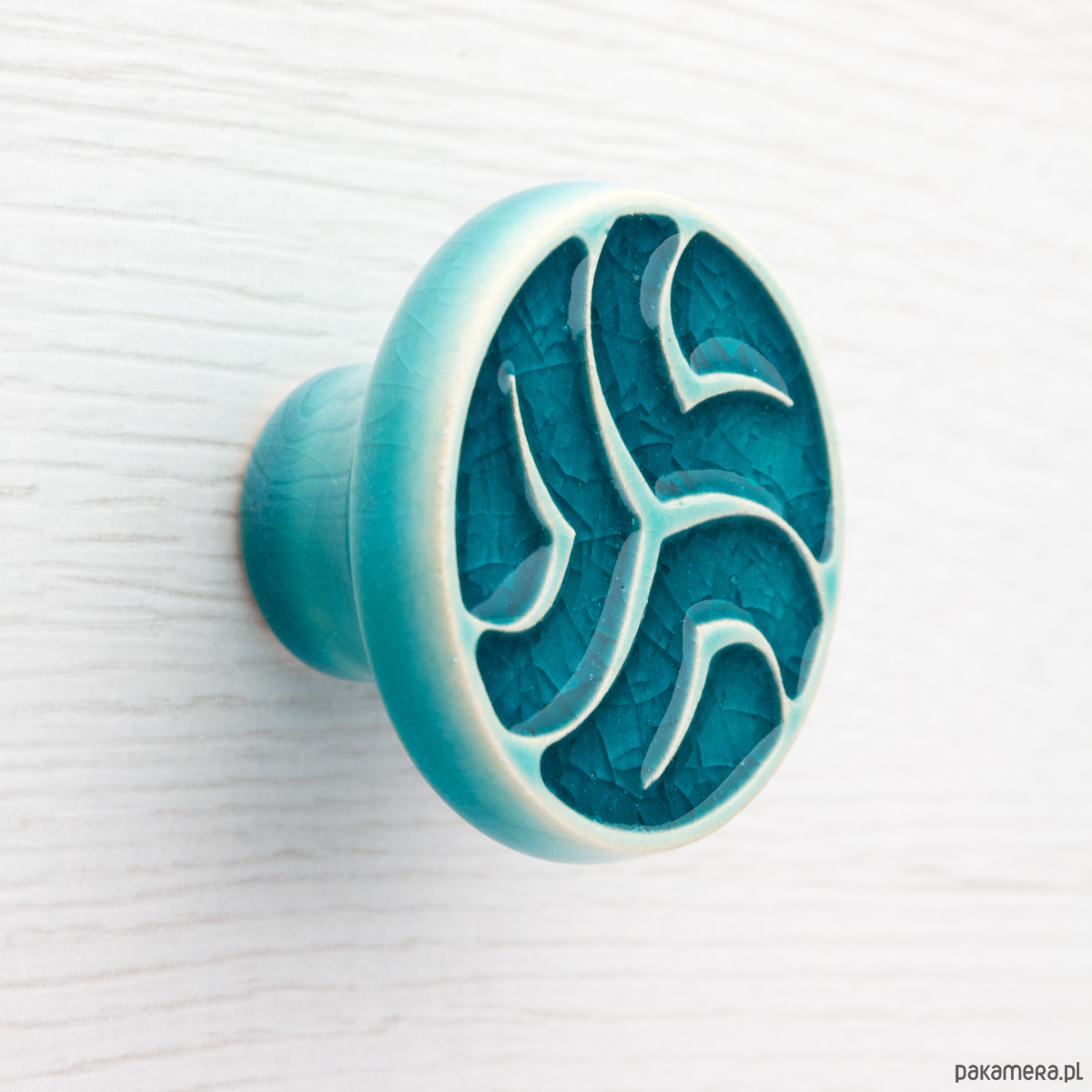 Ceramiczne gałki do mebli - ręcznie wykonane, ornamentowe, wg własnego projektu. Wykonane z jasnej gliny, pokryte błyszczącym, turkusowym szkliwem, wypalone dwukrotnie w wysokiej temperaturze.