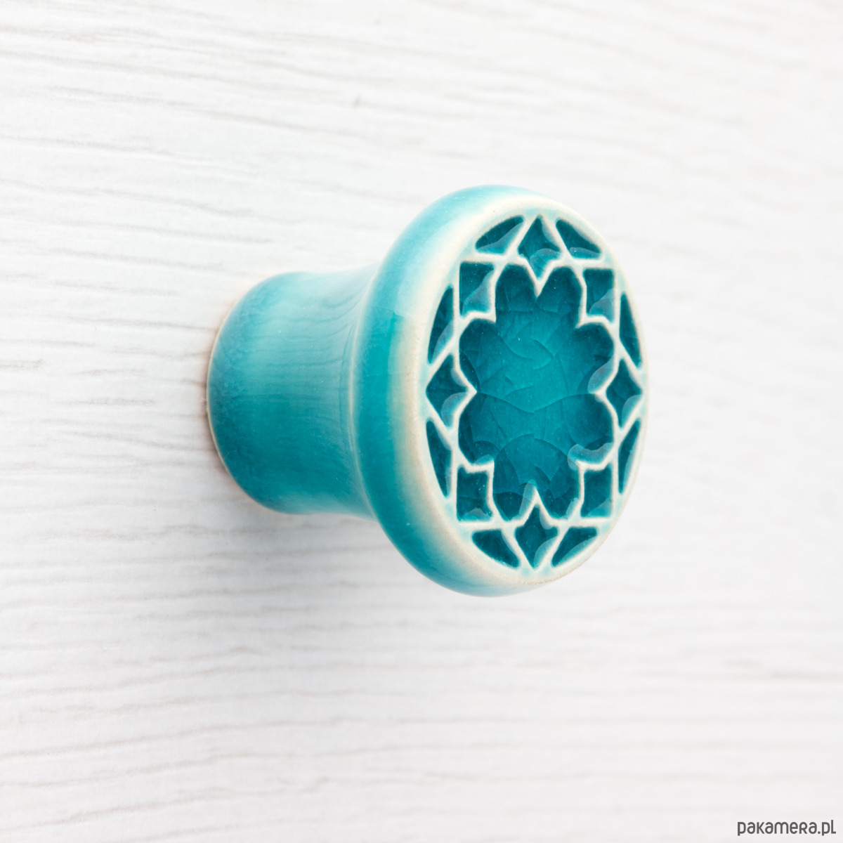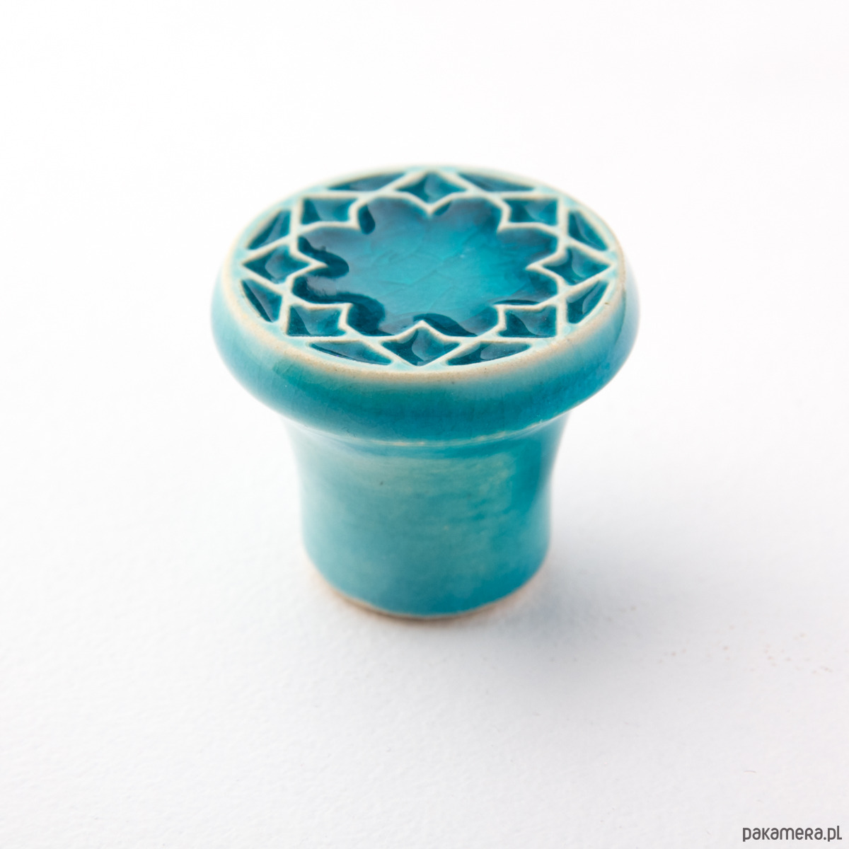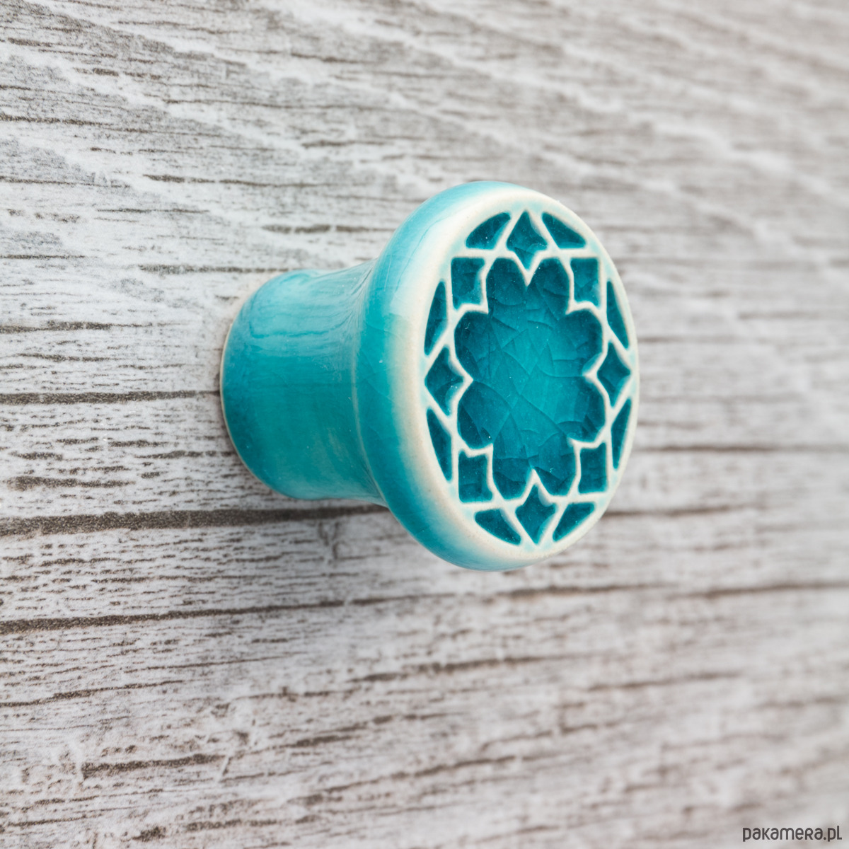 Ceramiczne gałki do mebli - ręcznie wykonane, ornamentowe, wg własnego projektu. Wykonane z jasnej gliny, pokryte błyszczącym szkliwem, wypalone dwukrotnie w wysokiej temperaturze. Twoje meble zyskają nowy, niepowtarzalny, jedyny w swoim rodzaju wygląd.