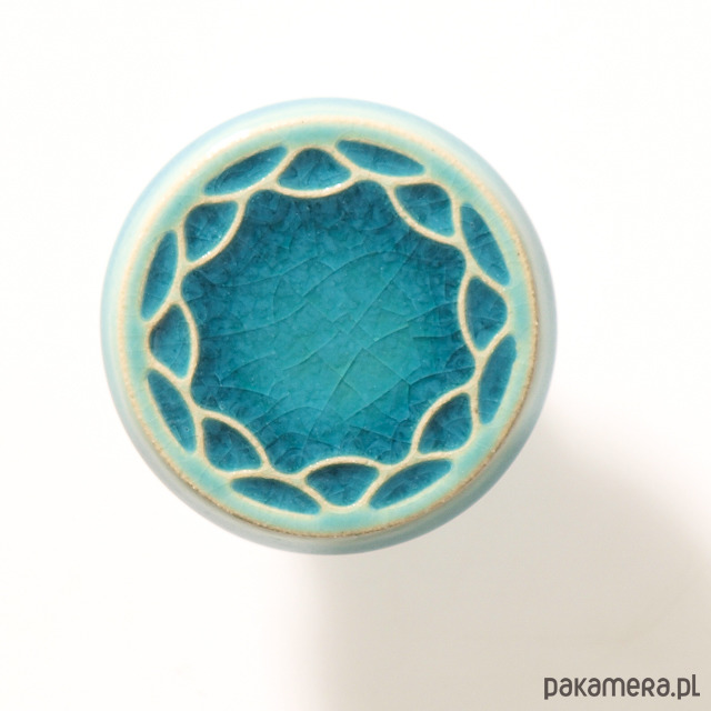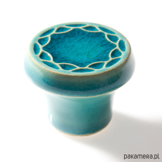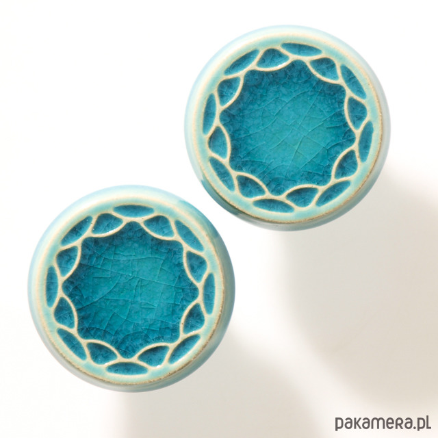Ceramiczne gałki do mebli - ręcznie wykonane, ornamentowe, wg własnego projektu. Wykonane z jasnej gliny, pokryte błyszczącym, szkliwem, wypalone dwukrotnie w wysokiej temperaturze.