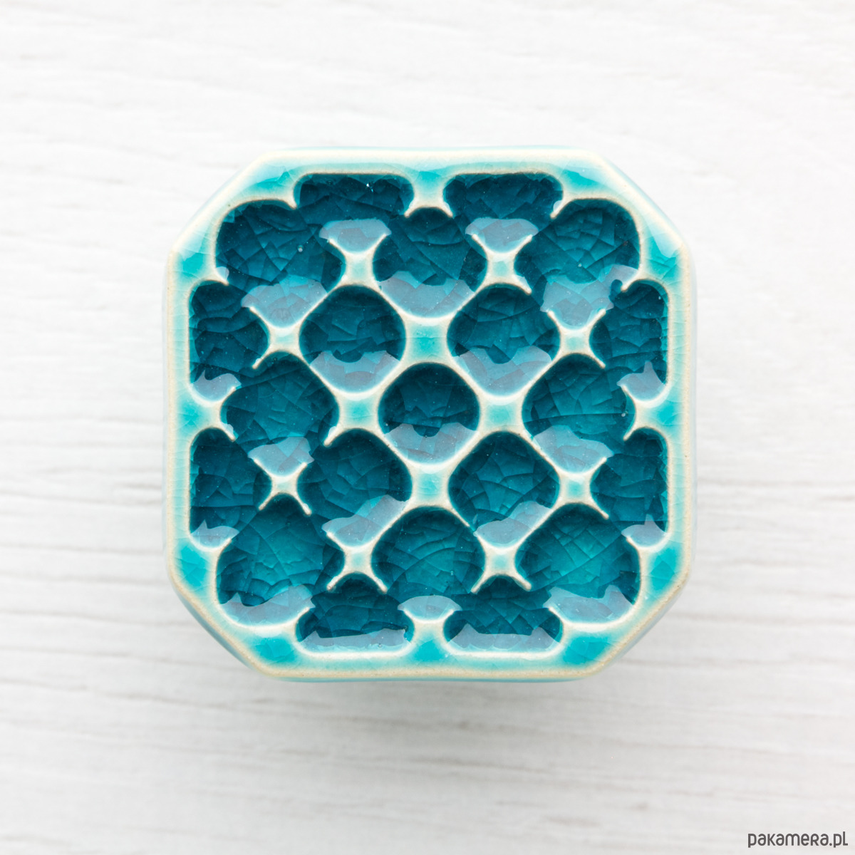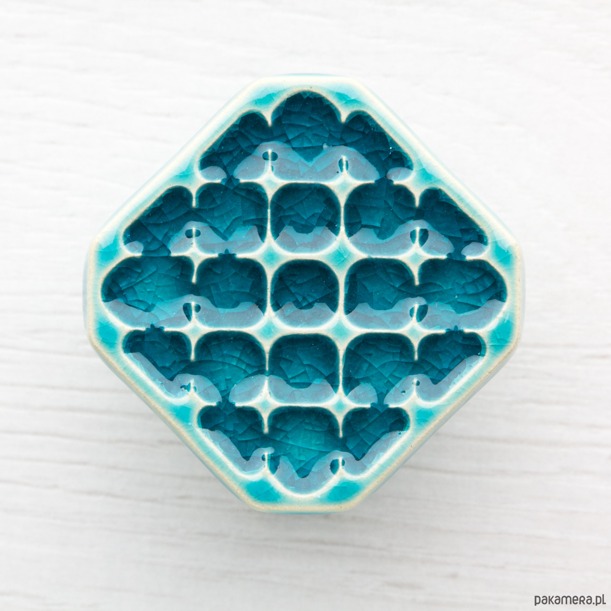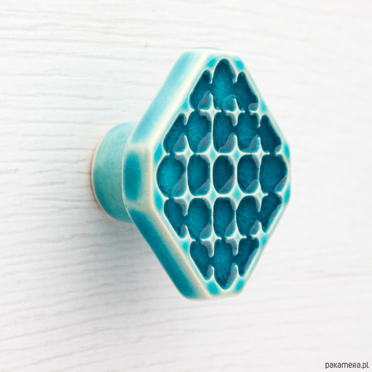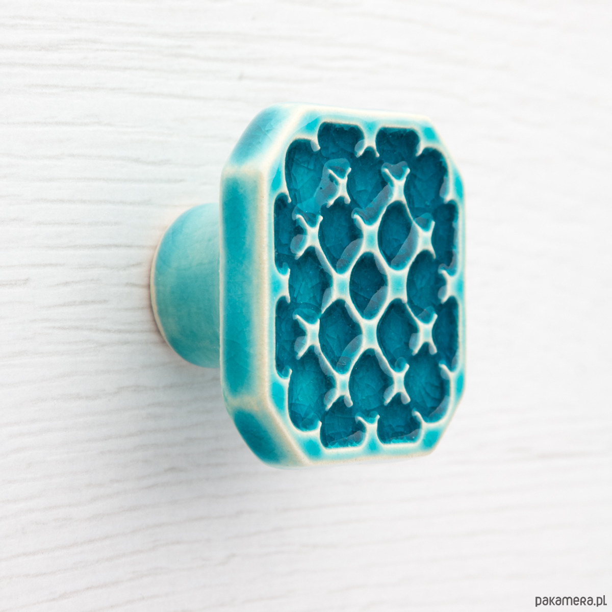 Ceramiczne gałki do mebli - ręcznie wykonane, ornamentowe, wg własnego projektu. Wykonane z jasnej gliny, pokryte błyszczącym, turkusowym szkliwem, wypalone dwukrotnie w wysokiej temperaturze.