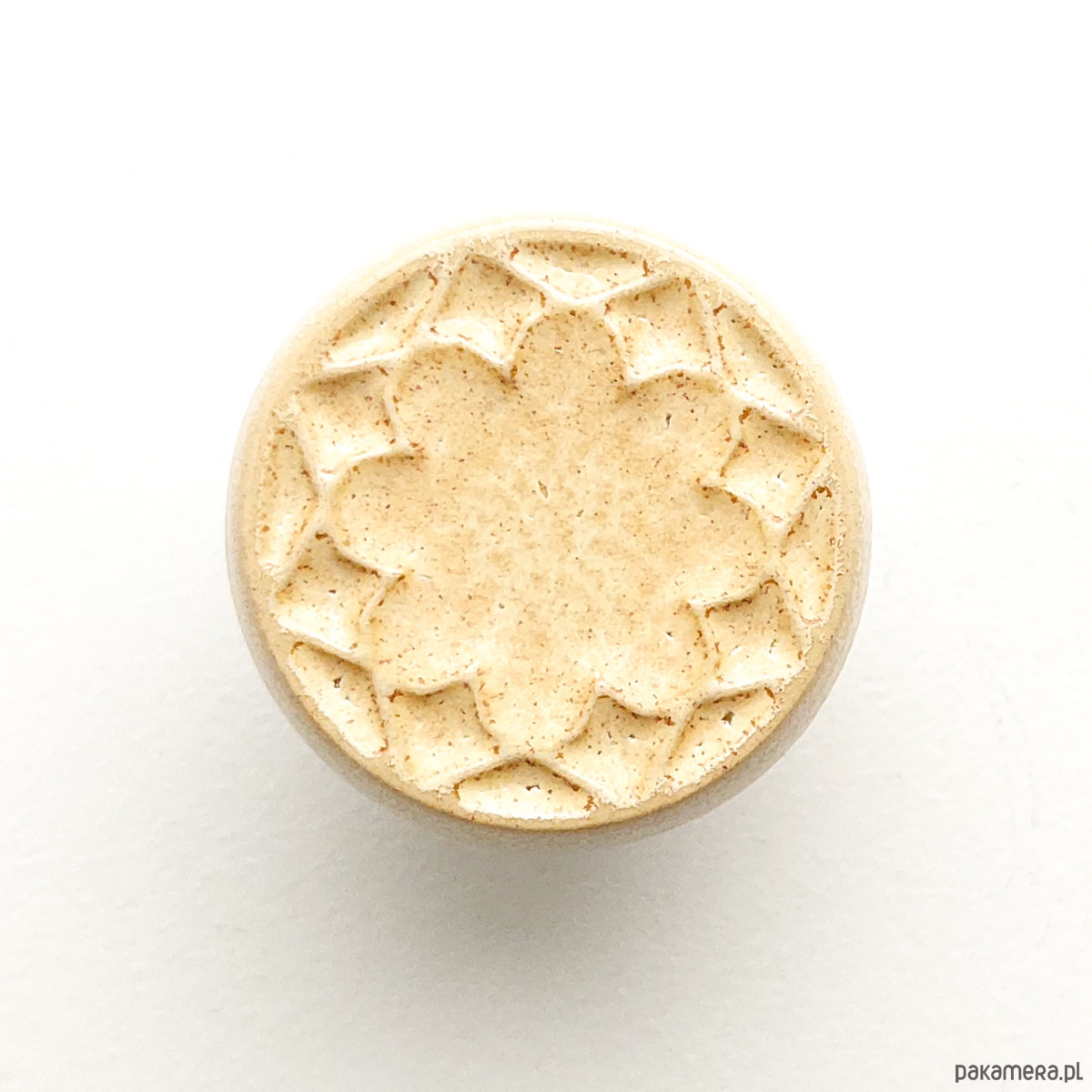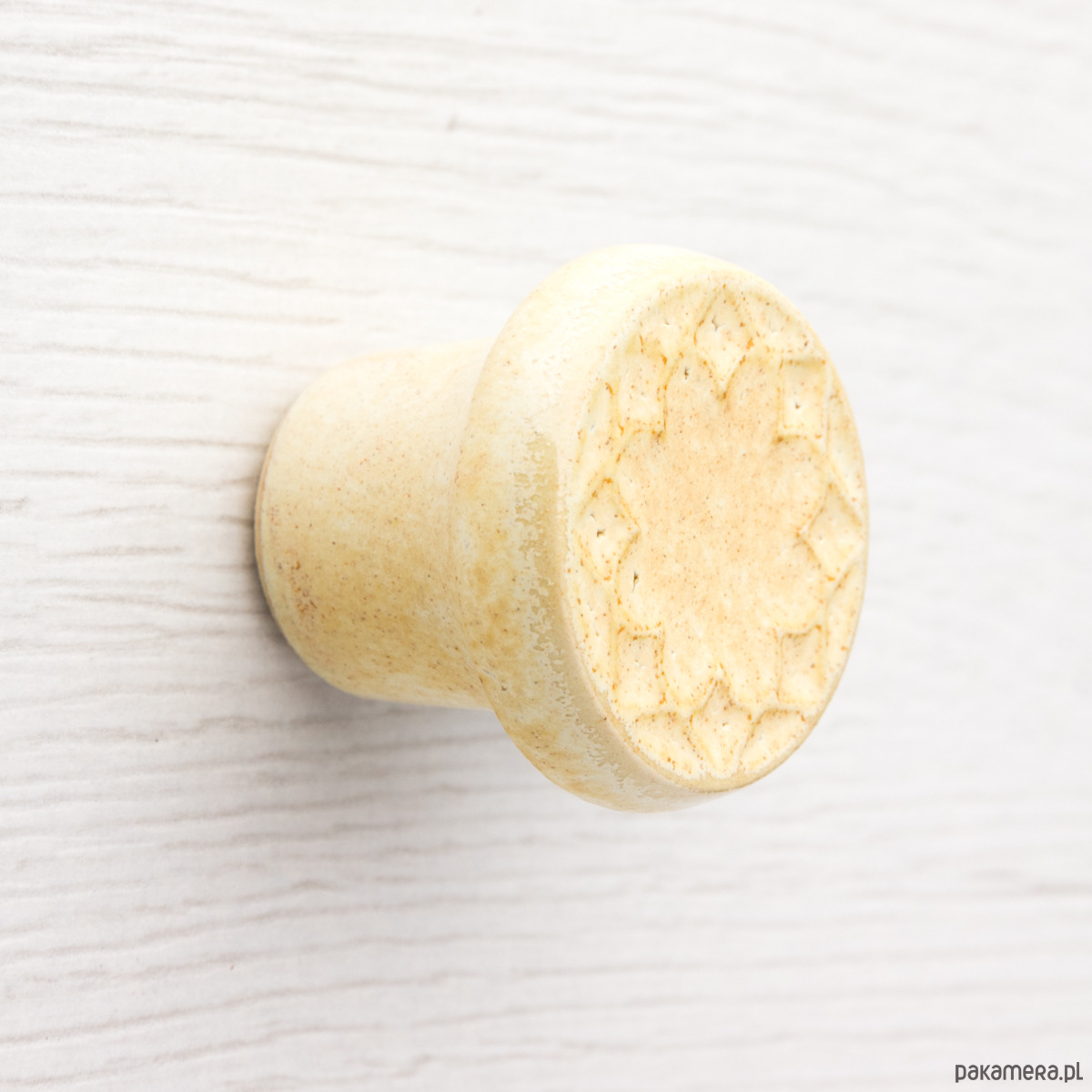 Ceramiczna gałka do mebli - ręcznie wykonana, ornamentowa, wg własnego projektu. Wykonana z jasnej gliny, pokryta szkliwem o satynowym połysku, wypalona dwukrotnie w wysokiej temperaturze.
