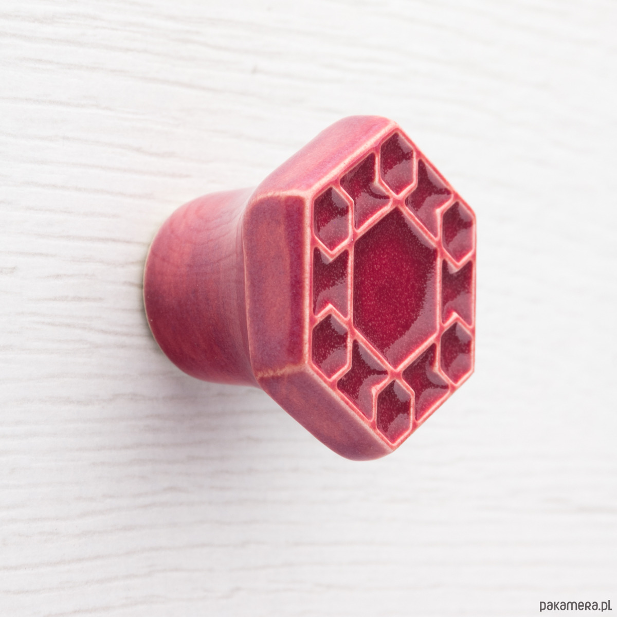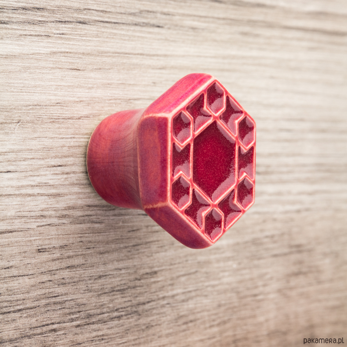 Ceramiczna gałka do mebli z lekko wypukłym ornamentem. Ręcznie wykonana z jasnej gliny, pokryta błyszczącym szkliwem, wypalona dwukrotnie w wysokiej temperaturze. Twoje meble zyskają nowy, niepowtarzalny, jedyny w swoim rodzaju wygląd.
