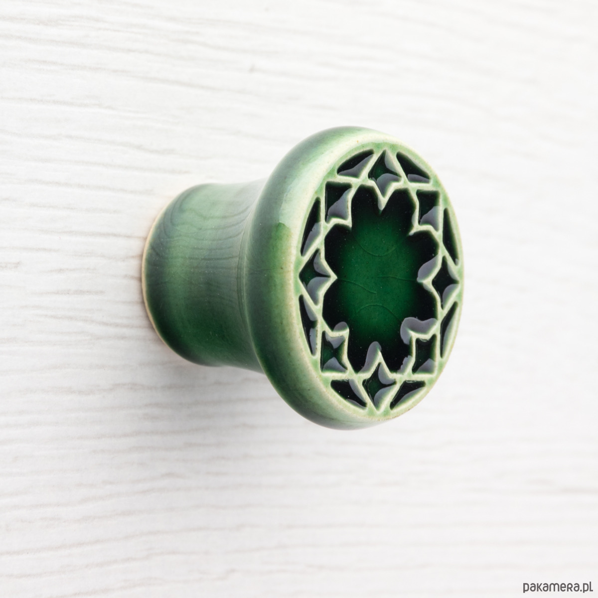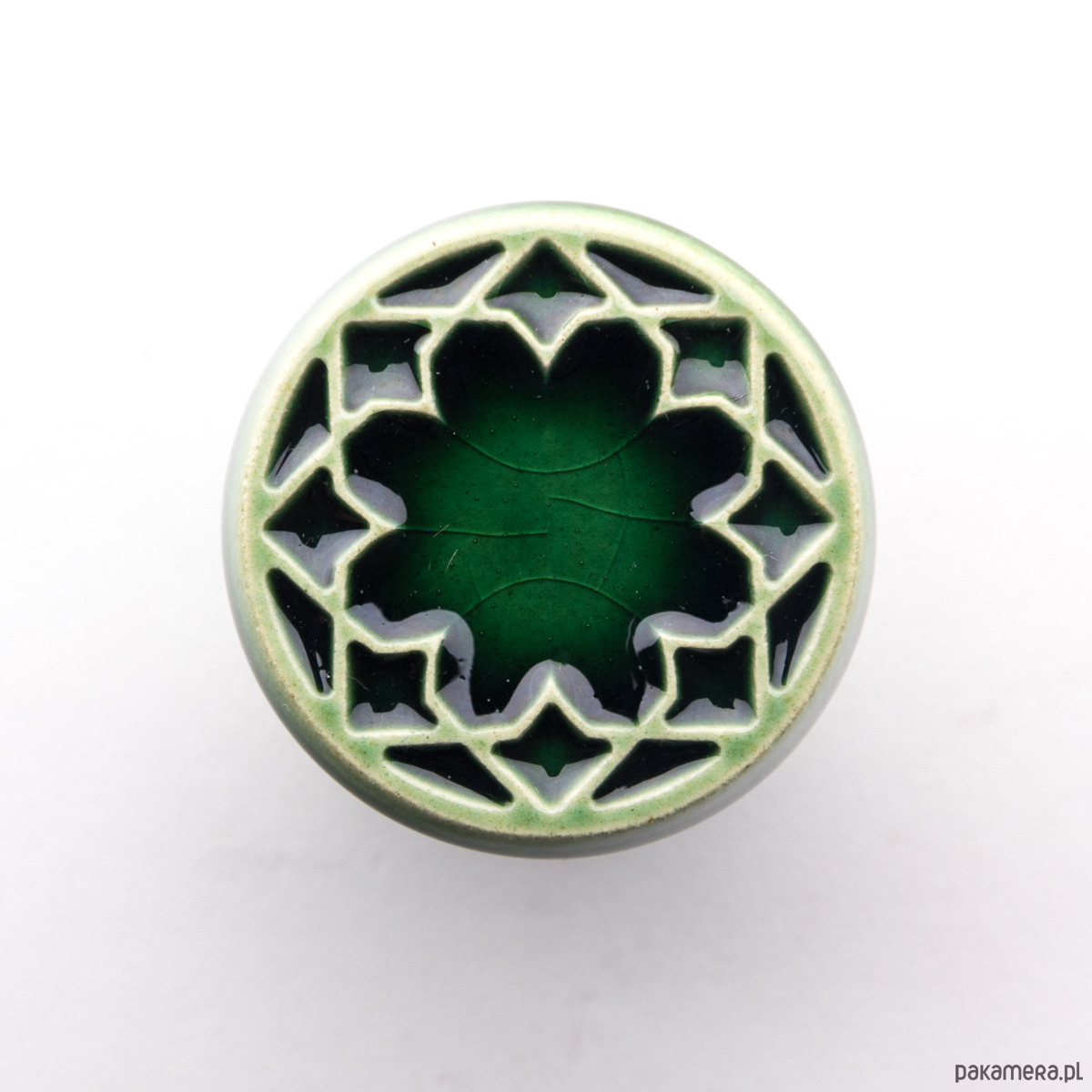 Ceramiczne gałki do mebli - ręcznie wykonane, ornamentowe, wg własnego projektu. Wykonane z jasnej gliny, pokryte błyszczącym, szkliwem, wypalone dwukrotnie w wysokiej temperaturze.