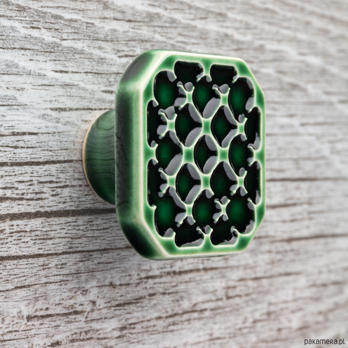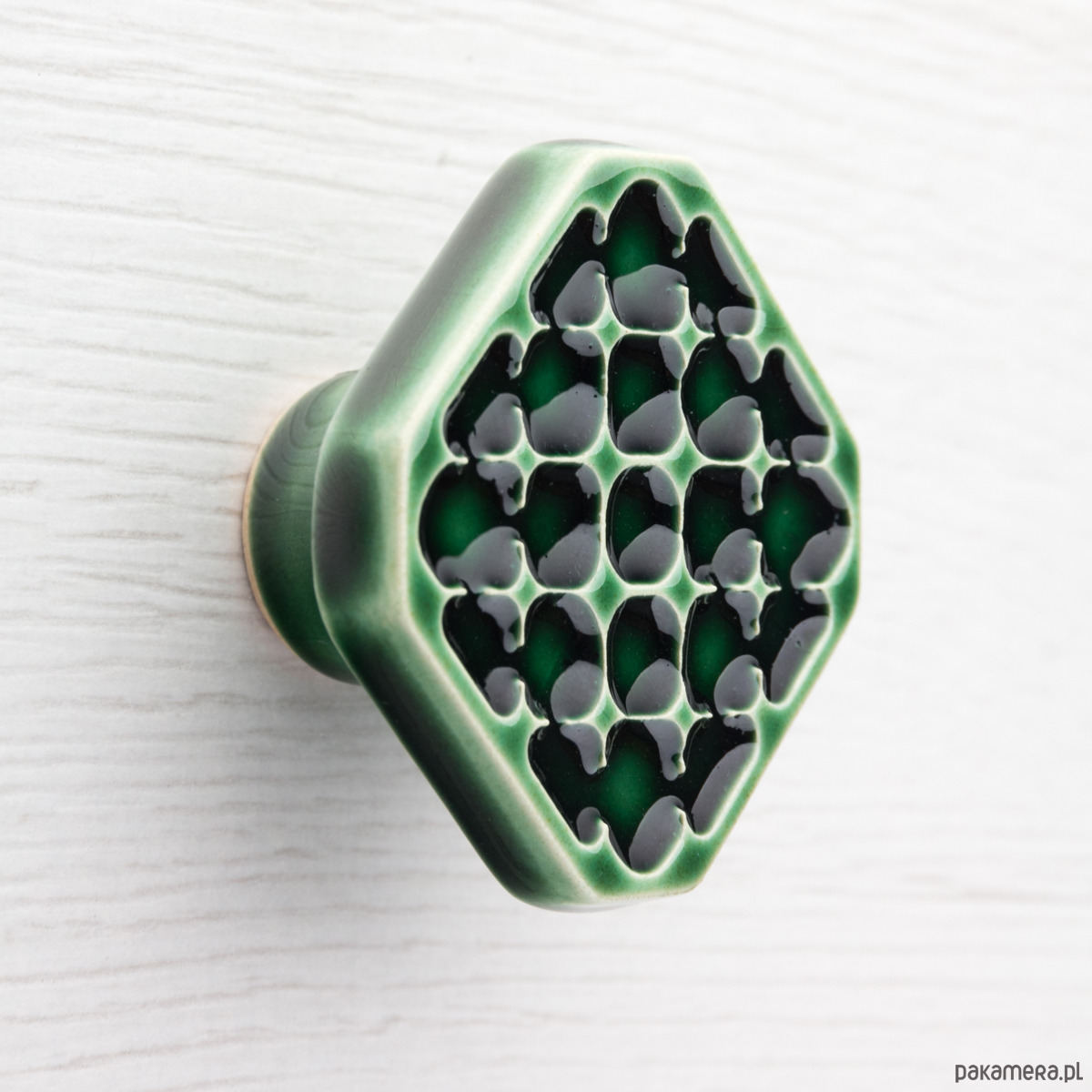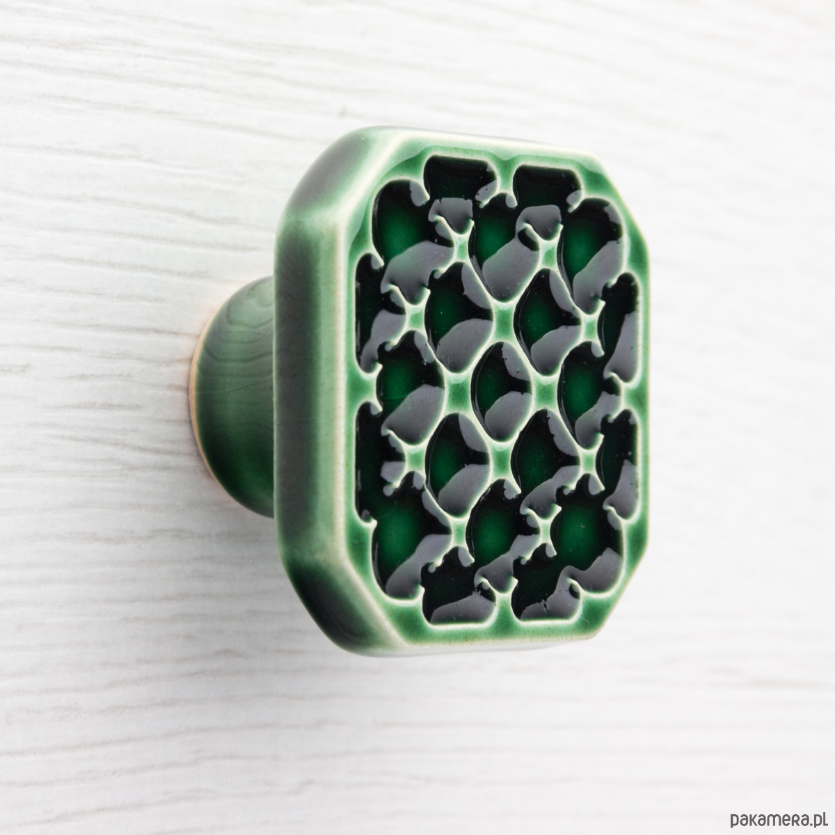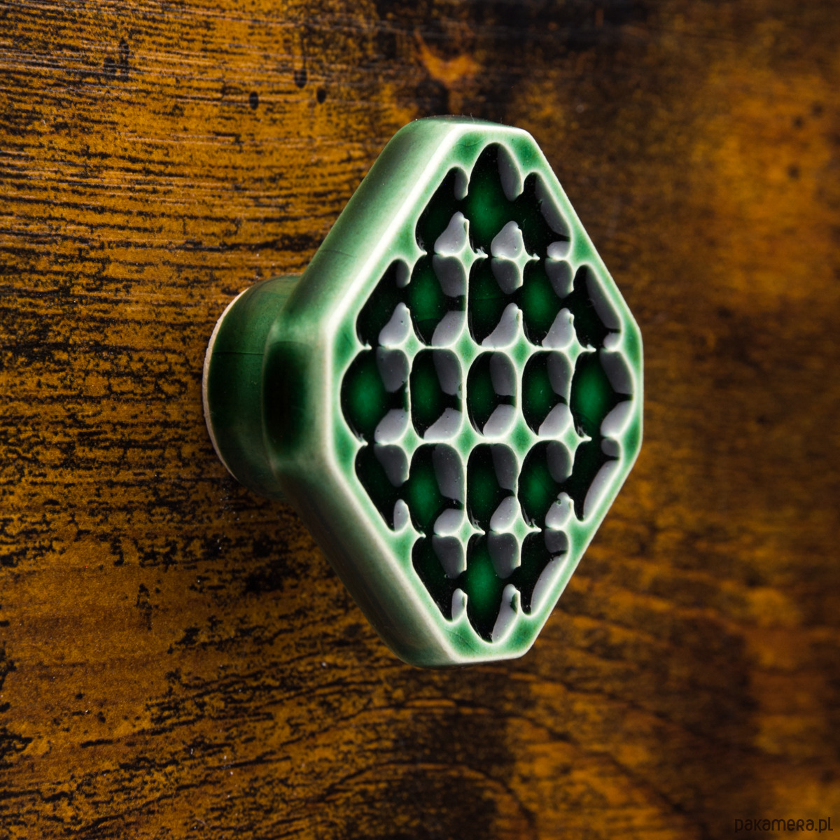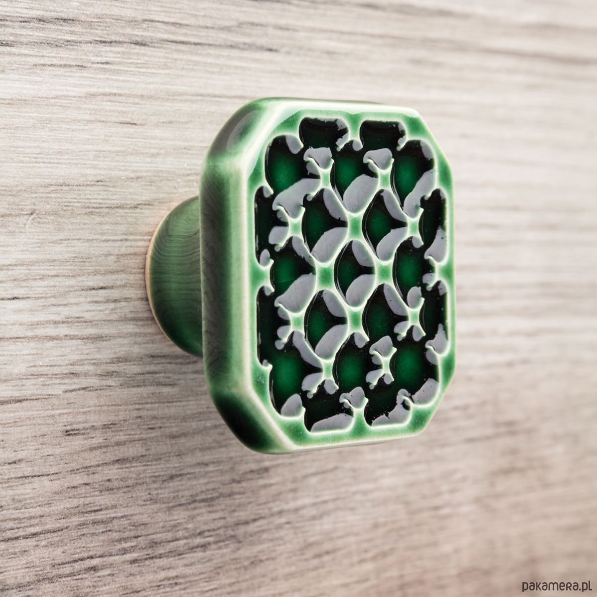 Ceramiczne gałki do mebli - ręcznie wykonane, ornamentowe, wg własnego projektu. Wykonane z jasnej gliny, pokryte błyszczącym szkliwem, wypalone dwukrotnie w wysokiej temperaturze.