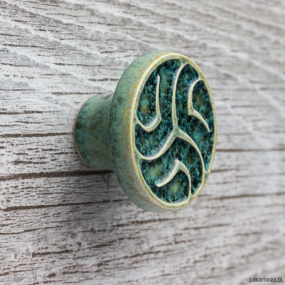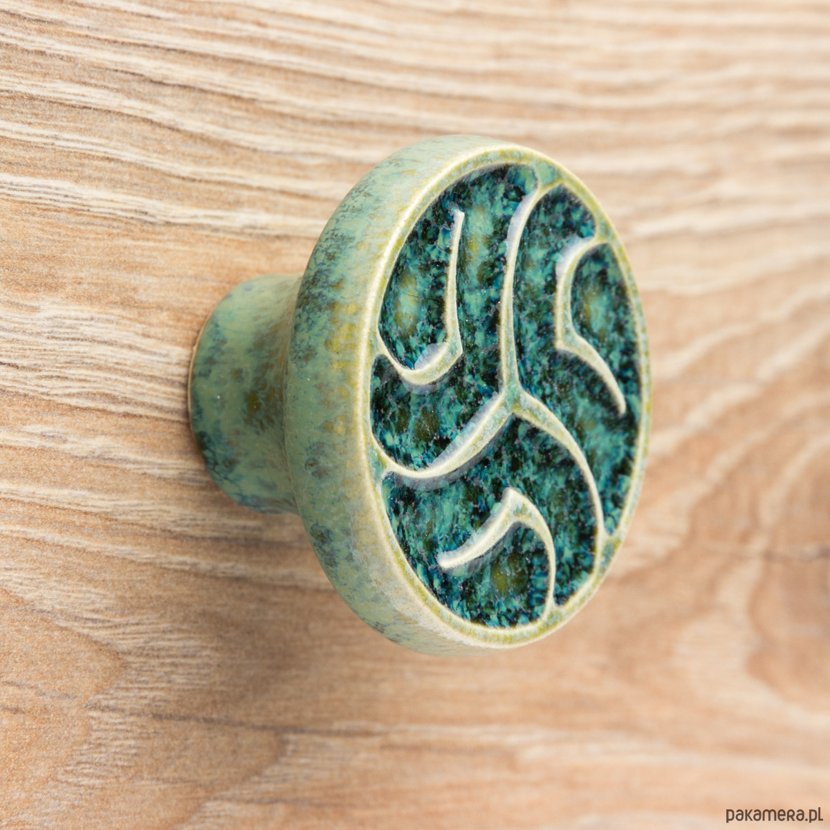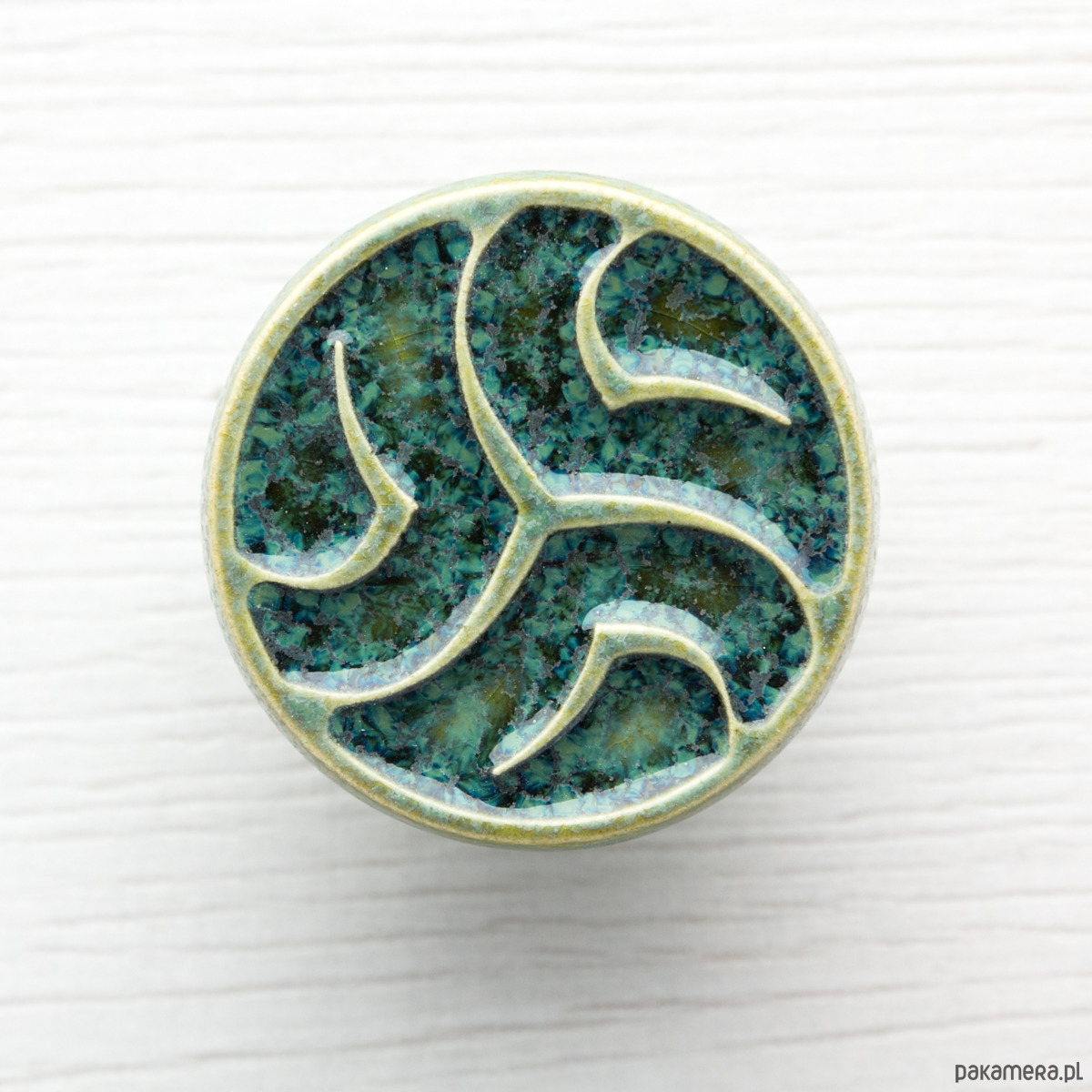 Ceramiczne gałki do mebli - ręcznie wykonane, ornamentowe, wg własnego projektu. Wykonane z jasnej gliny, pokryte błyszczącym szkliwem, wypalone dwukrotnie w wysokiej temperaturze.