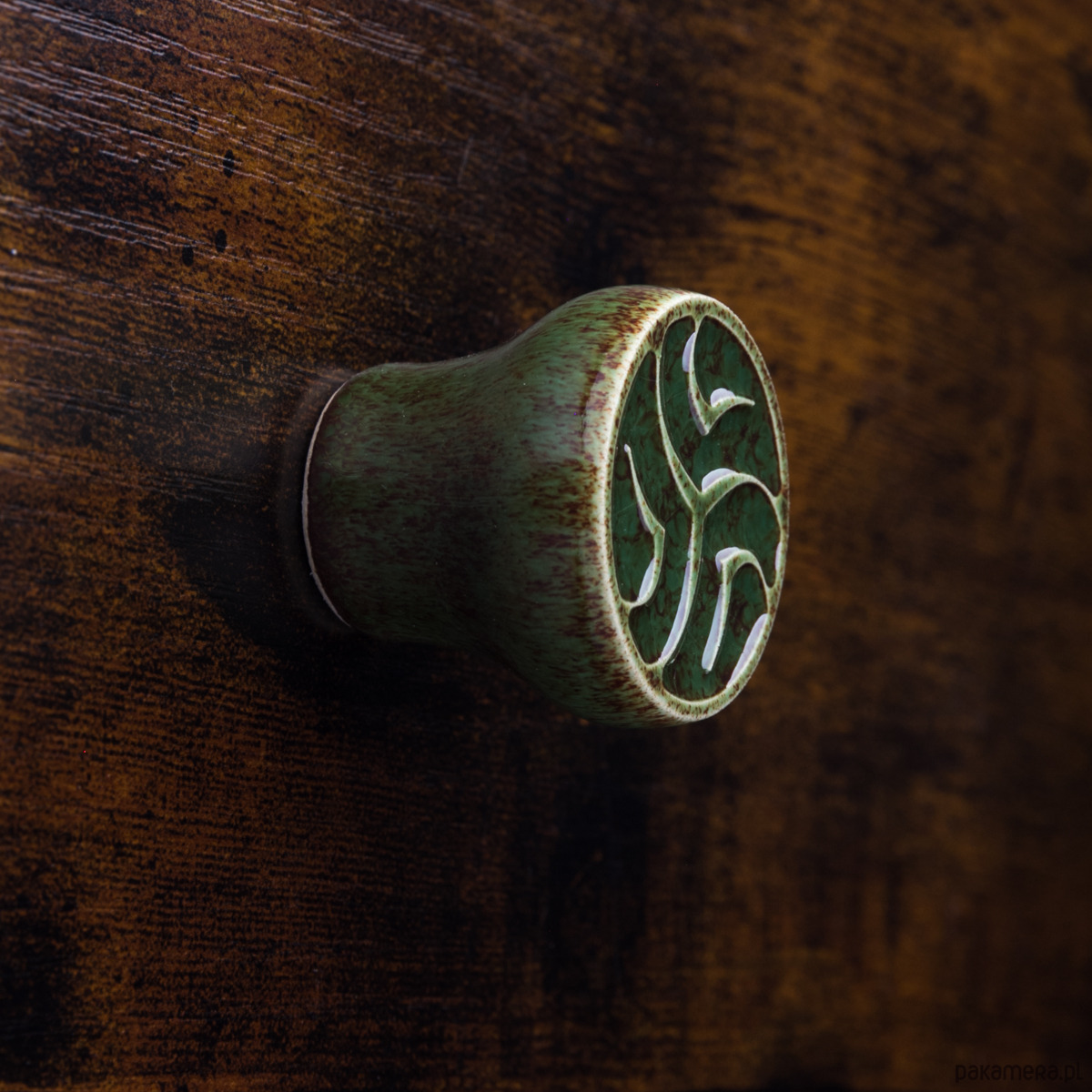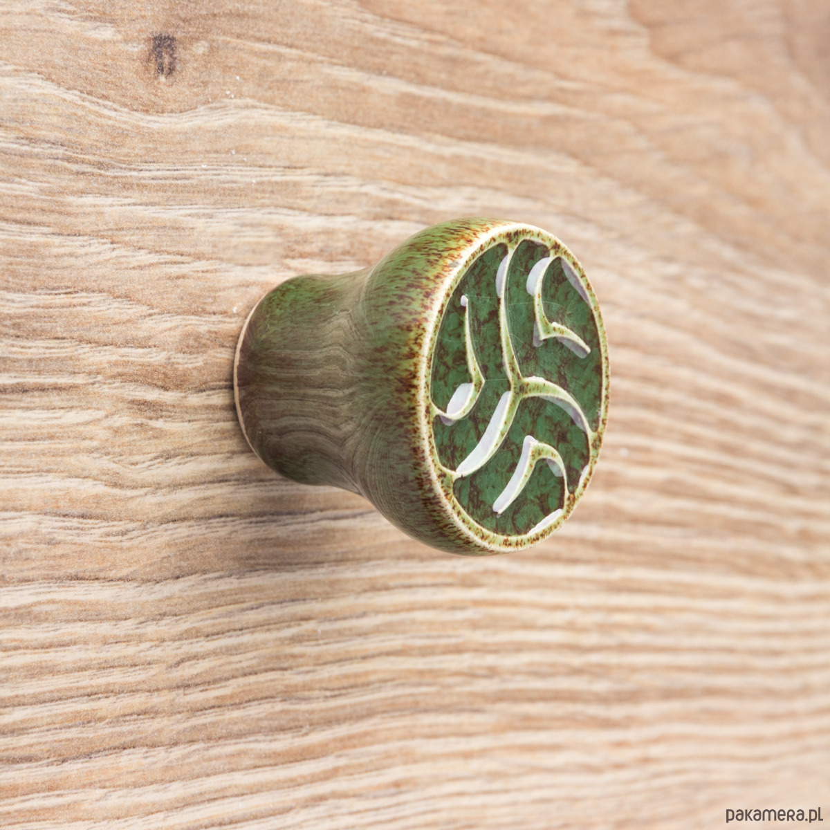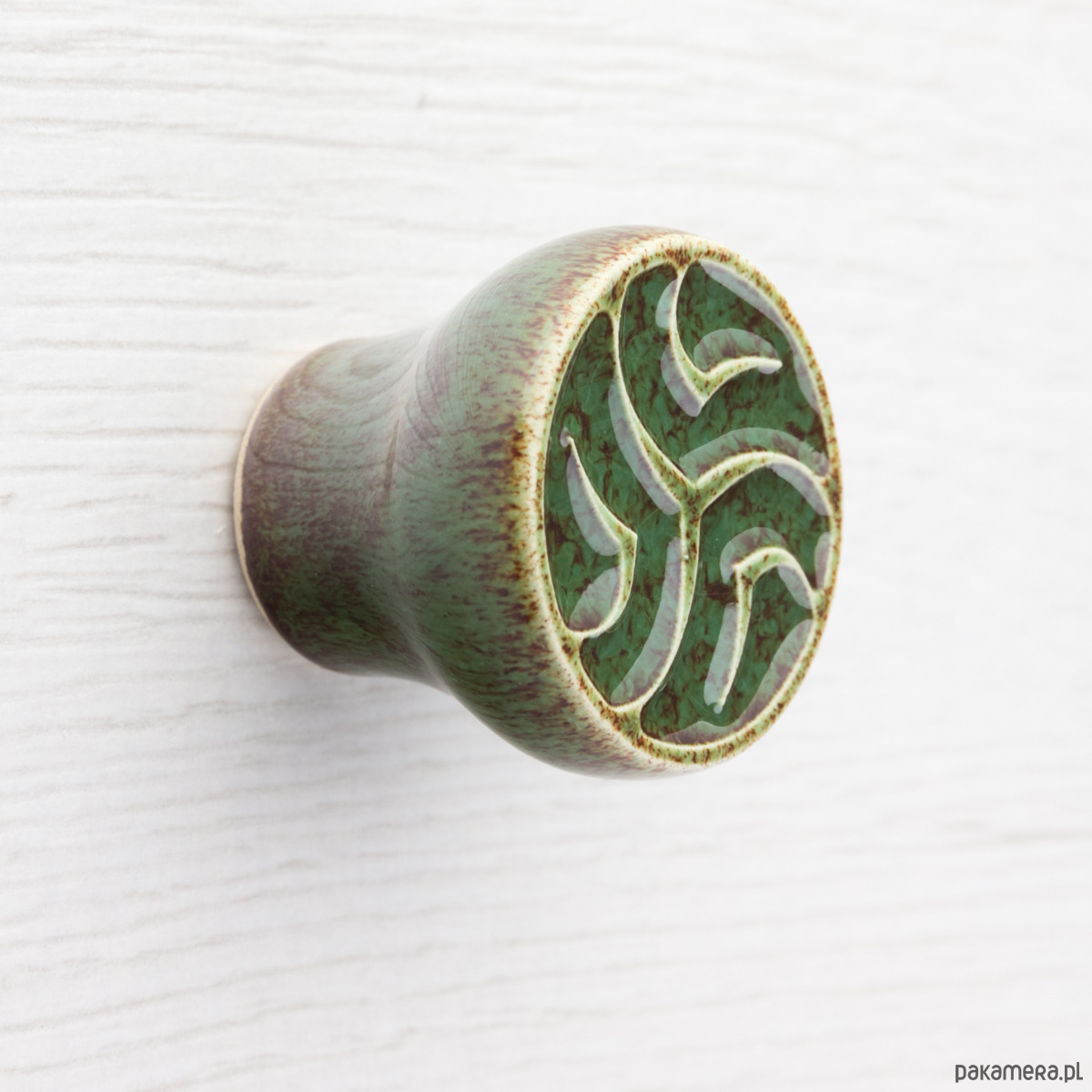 Ceramiczne gałki do mebli - ręcznie wykonane, ornamentowe, wg własnego projektu. Wykonane z jasnej gliny, pokryte błyszczącym, szkliwem, wypalone dwukrotnie w wysokiej temperaturze.