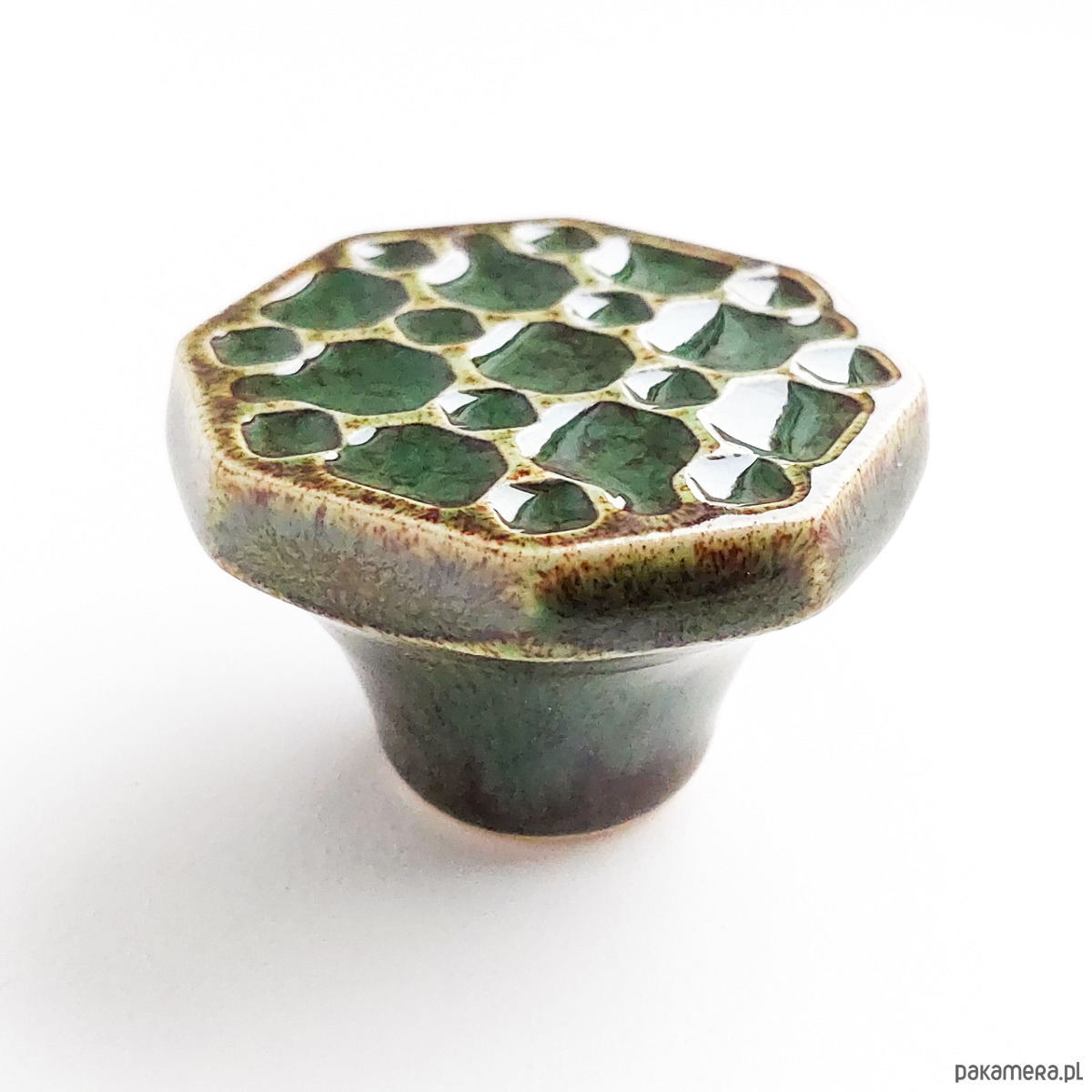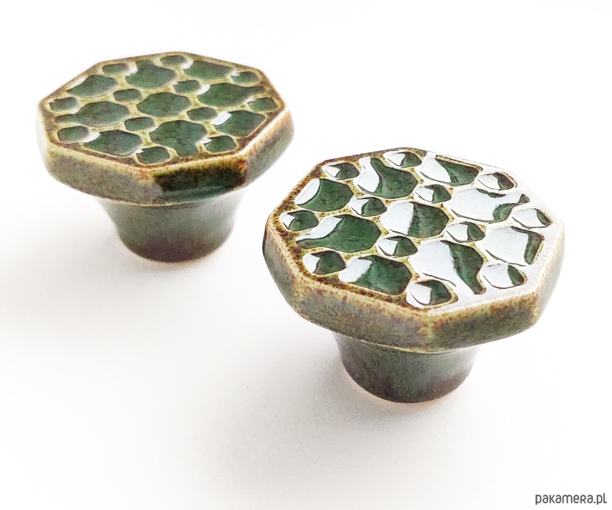 Ceramiczne gałki do mebli - ręcznie wykonane, ornamentowe, wg własnego projektu. Wykonane z jasnej gliny, pokryte błyszczącym szkliwem, wypalone dwukrotnie w wysokiej temperaturze.