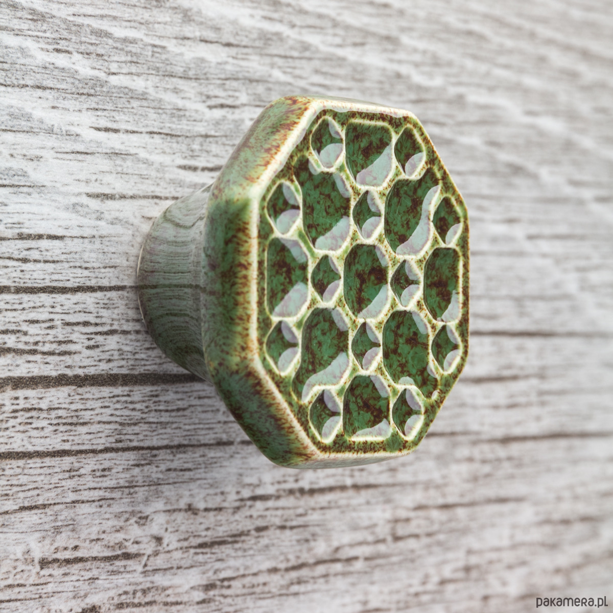 Ceramiczne gałki do mebli - ręcznie wykonane, ornamentowe, wg własnego projektu. Wykonane z jasnej gliny, pokryte błyszczącym szkliwem, wypalone dwukrotnie w wysokiej temperaturze.