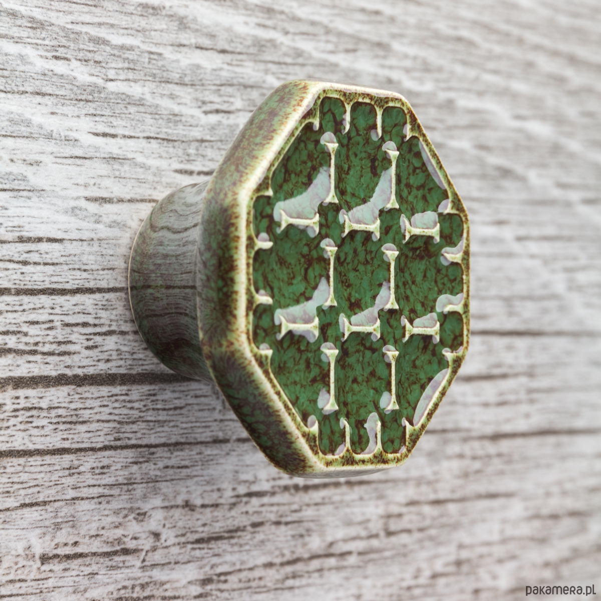 Ceramiczne gałki do mebli - ręcznie wykonane, ornamentowe, wg własnego projektu. Wykonane z jasnej gliny, pokryte błyszczącym szkliwem, wypalone dwukrotnie w wysokiej temperaturze.