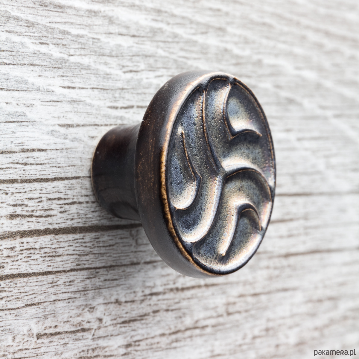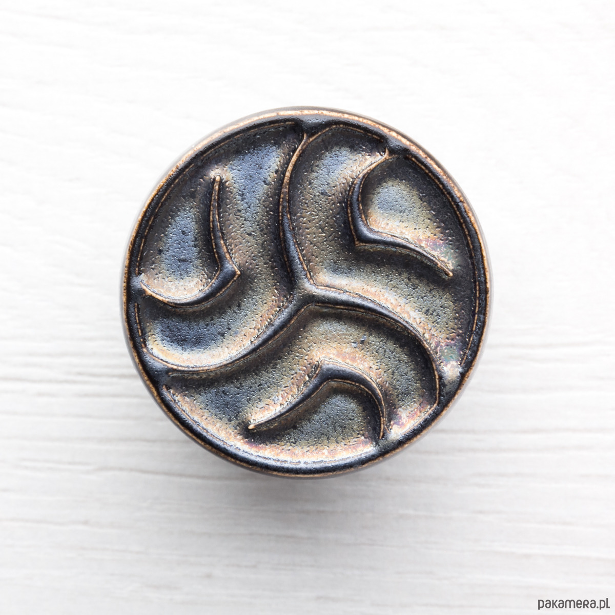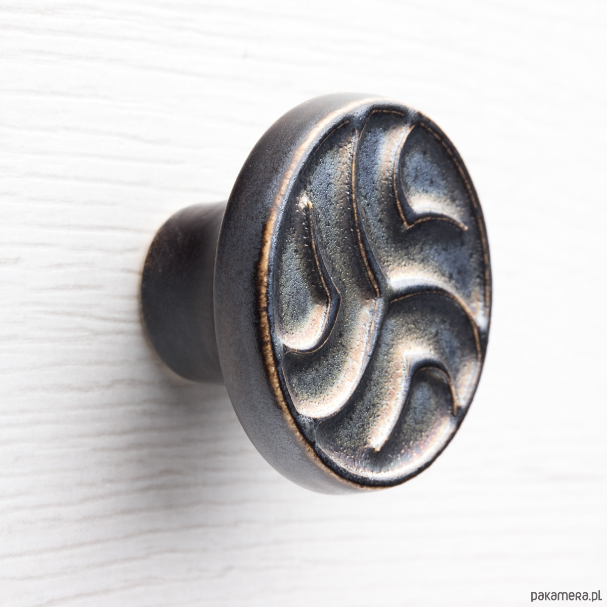 Ceramiczne gałki do mebli - ręcznie wykonane, ornamentowe, wg własnego projektu. Wykonane z jasnej gliny, pokryte matowym szkliwem, wypalone dwukrotnie w wysokiej temperaturze.