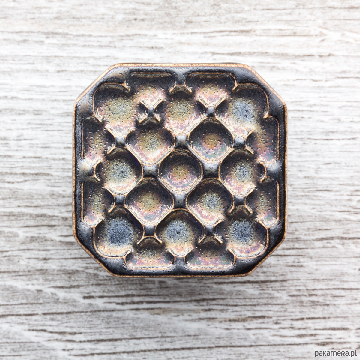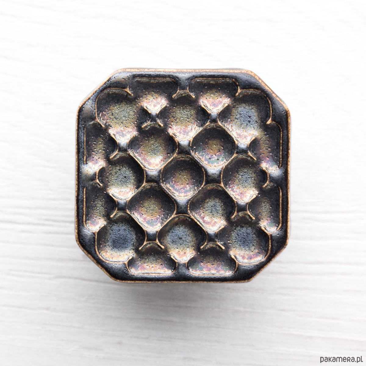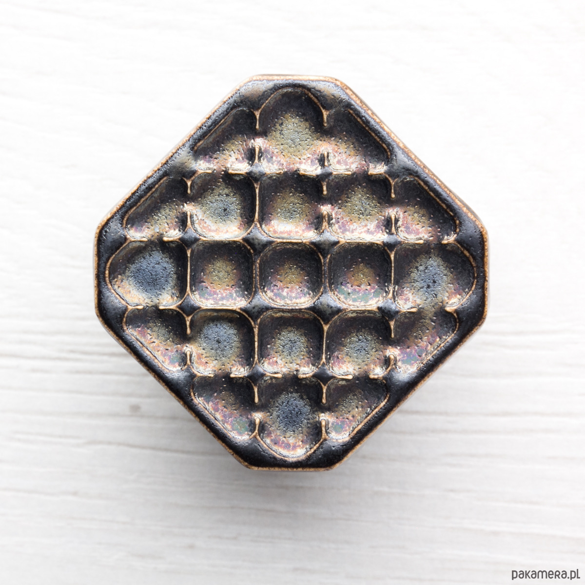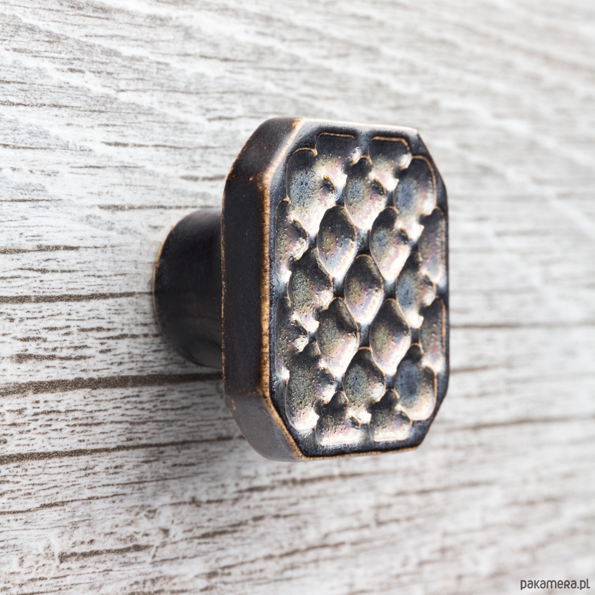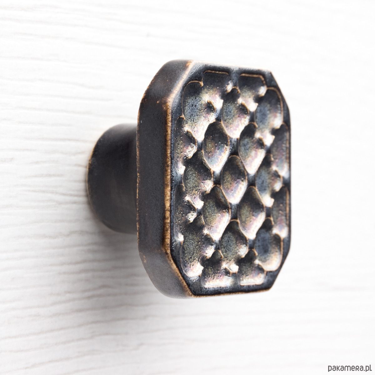 Ceramiczne gałki do mebli - ręcznie wykonane, ornamentowe, wg własnego projektu. Wykonane z jasnej gliny, pokryte matowym szkliwem, wypalone dwukrotnie w wysokiej temperaturze.