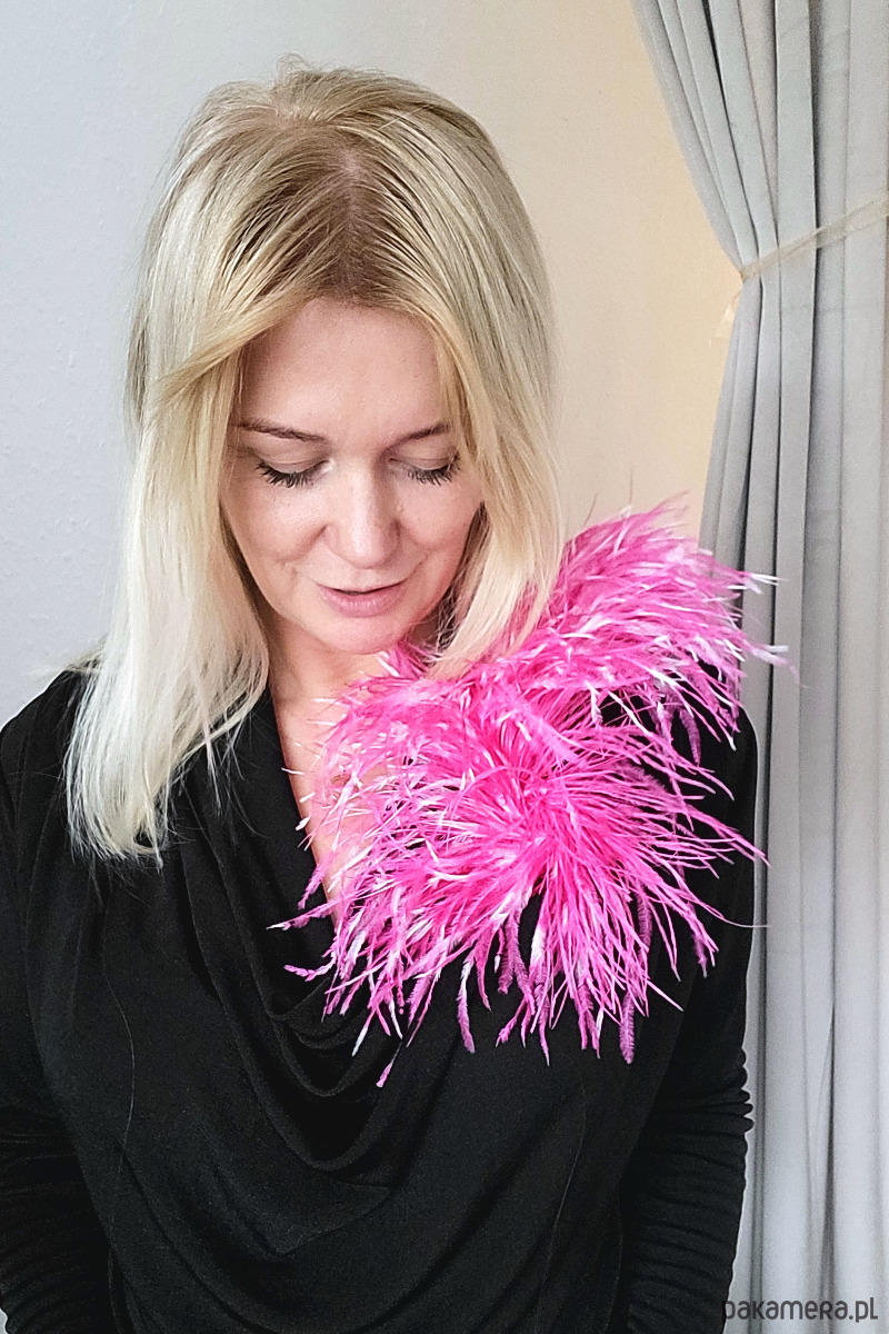 Przypinka GAMMA to absolutnie szałowa i wszechstronna ozdoba, która natychmiast doda charakteru każdej stylizacji. Ręcznie wykonana z delikatnych, naturalnych piór strusich w intensywnym kolorze malinowego różu, łączy w sobie funkcjonalność broszki oraz spinki do włosów. Wyposażona w podwójne zapięcie typu krokodylek, jest idealna do transformacji Twojego looku w mgnieniu oka.