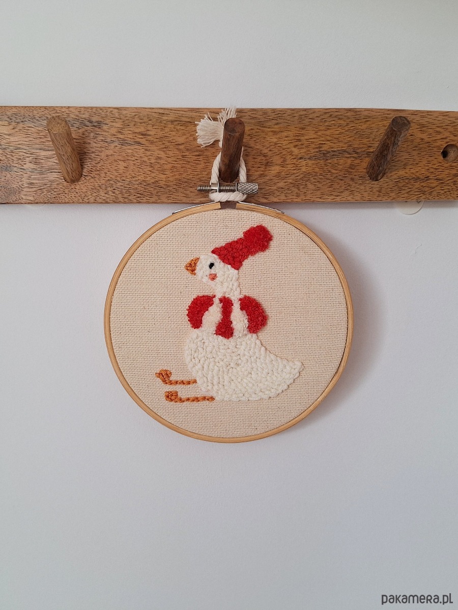 Skandynawska dekoracja do pokoju dziecka z motywem gąski. Ręcznie wykonana ozdoba ścienna, która wprowadza spokój, ciepło i bajkowy klimat do dziecięcej przestrzeni.