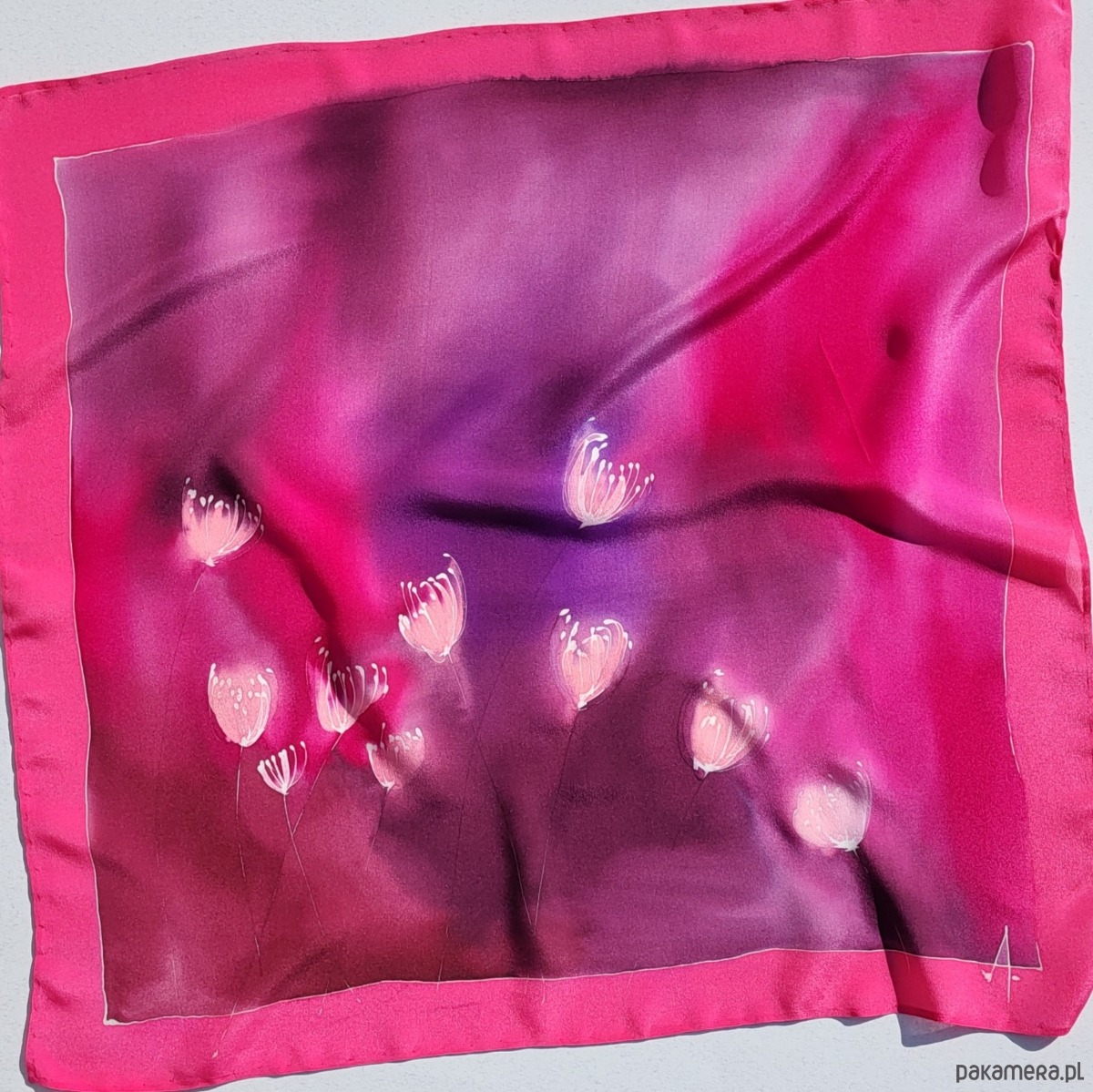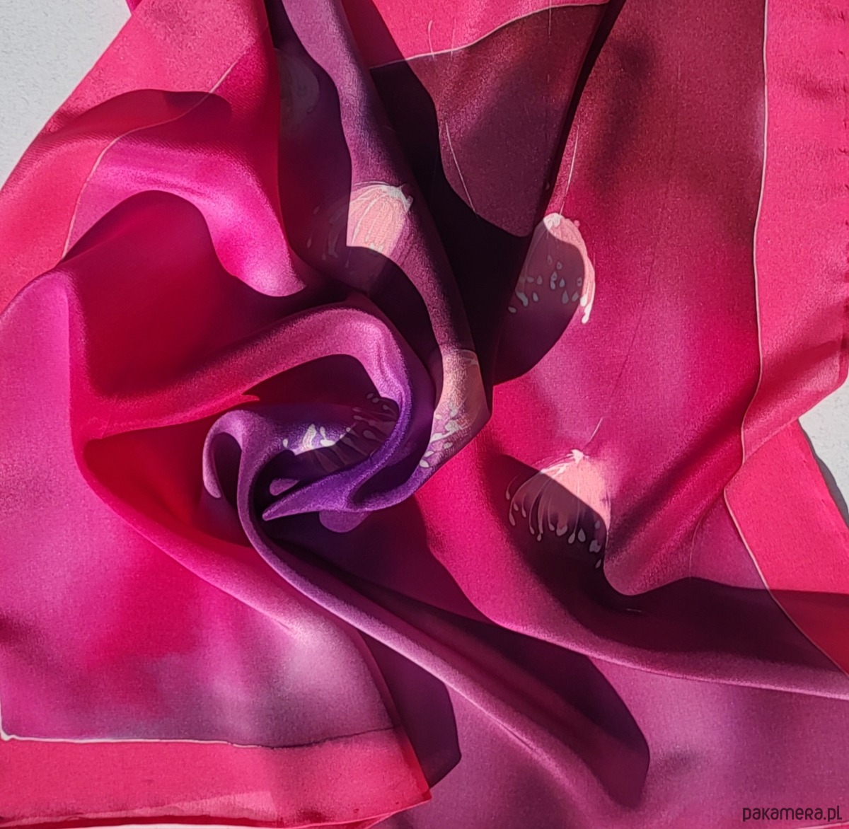 Jedwabna gawroszka recznie malowana na naturalnym jedwabiu.