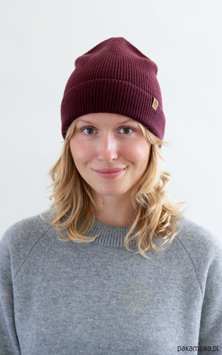 GAZELA RWS - Lekka Czapka Bordowy 100% Wełna Merino RWS