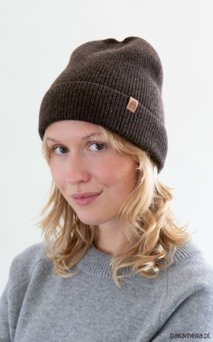 GAZELA RWS - Lekka Czapka Ciemny Brązowy 100% Wełna Merino RWS