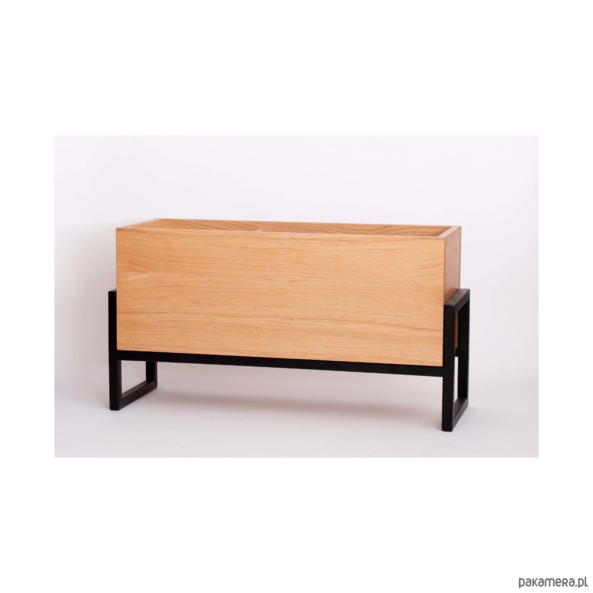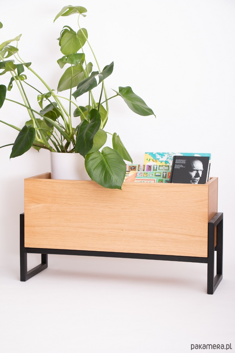 Solidny gazetnik-kwietnik wykonany jest z płyty stolarskiej fornirowanej dębem o grubości 19mm, z podstawą w stylu LOFT.