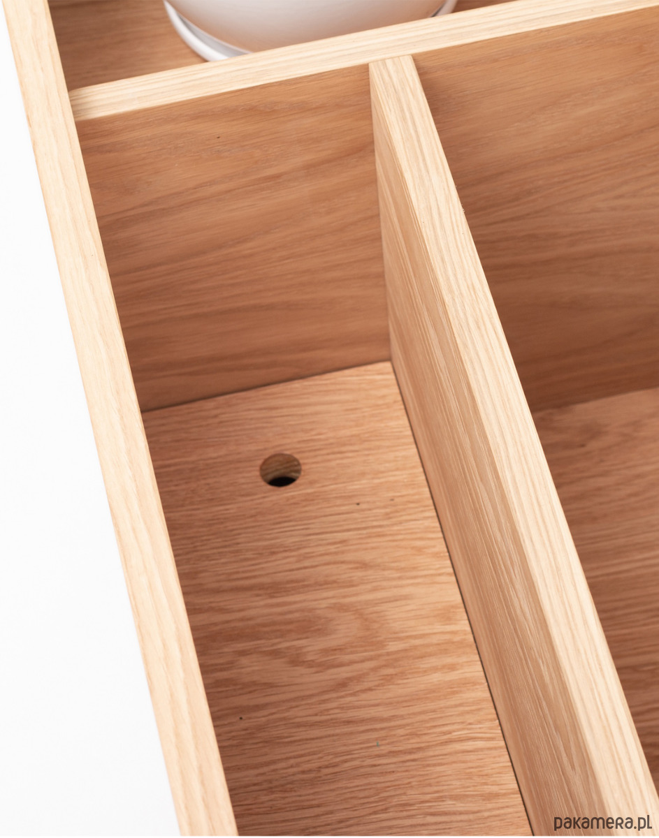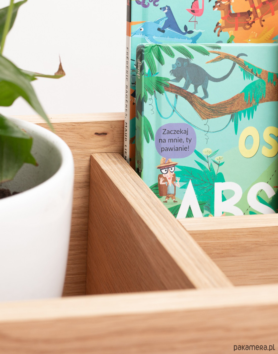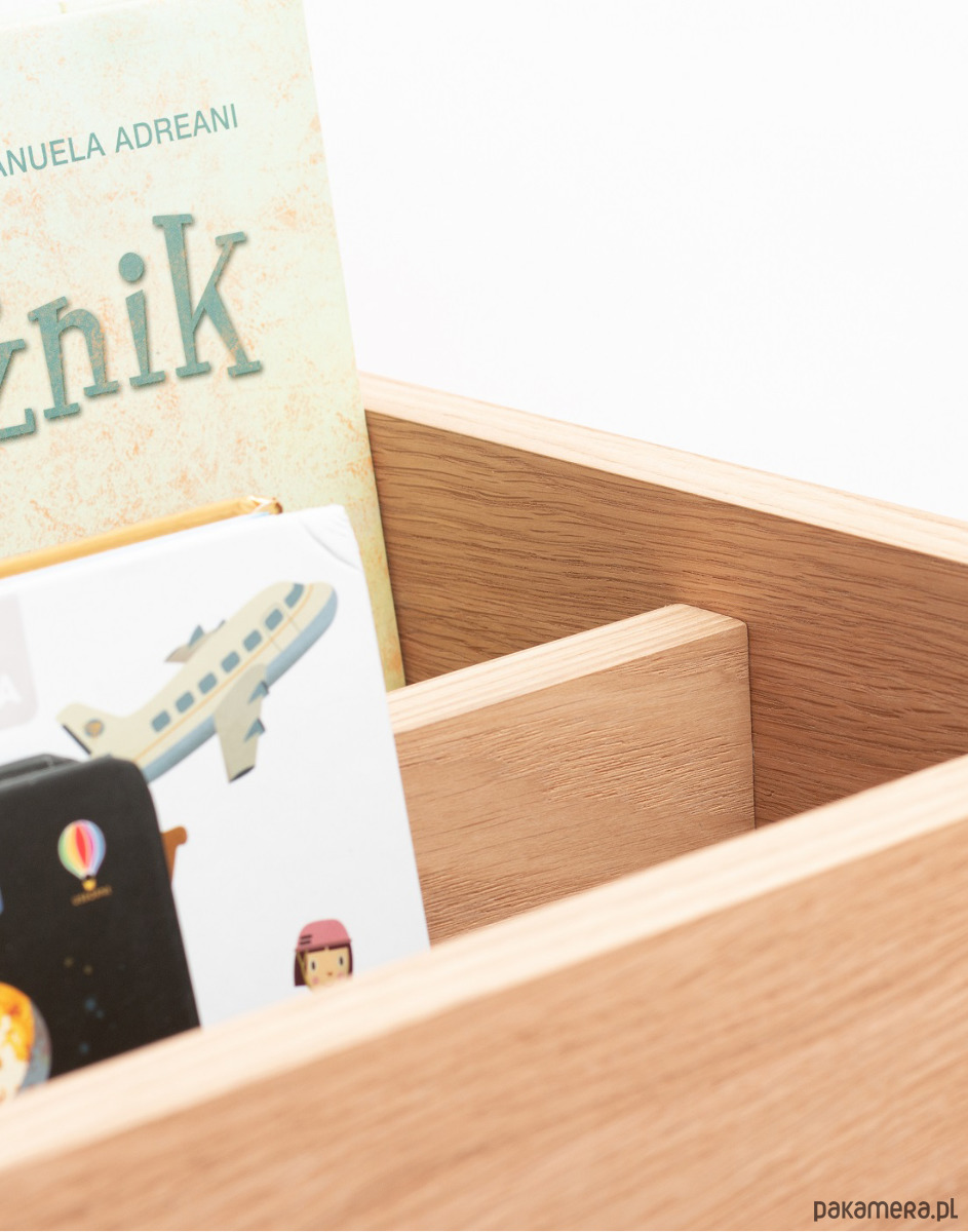 Głębsza część pomieści książki oraz czasopisma wielkiego formatu a regulowana wysokość jednej z komór pozwoli na umieszczenie mniejszych książek lub tabletu.