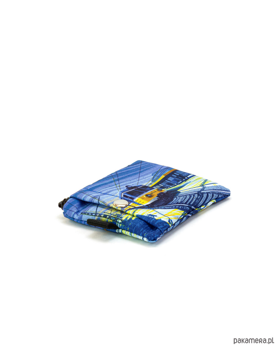 Główna komora zapinana na zamek, boczna kieszeń na karty zapinana na zatrzask.